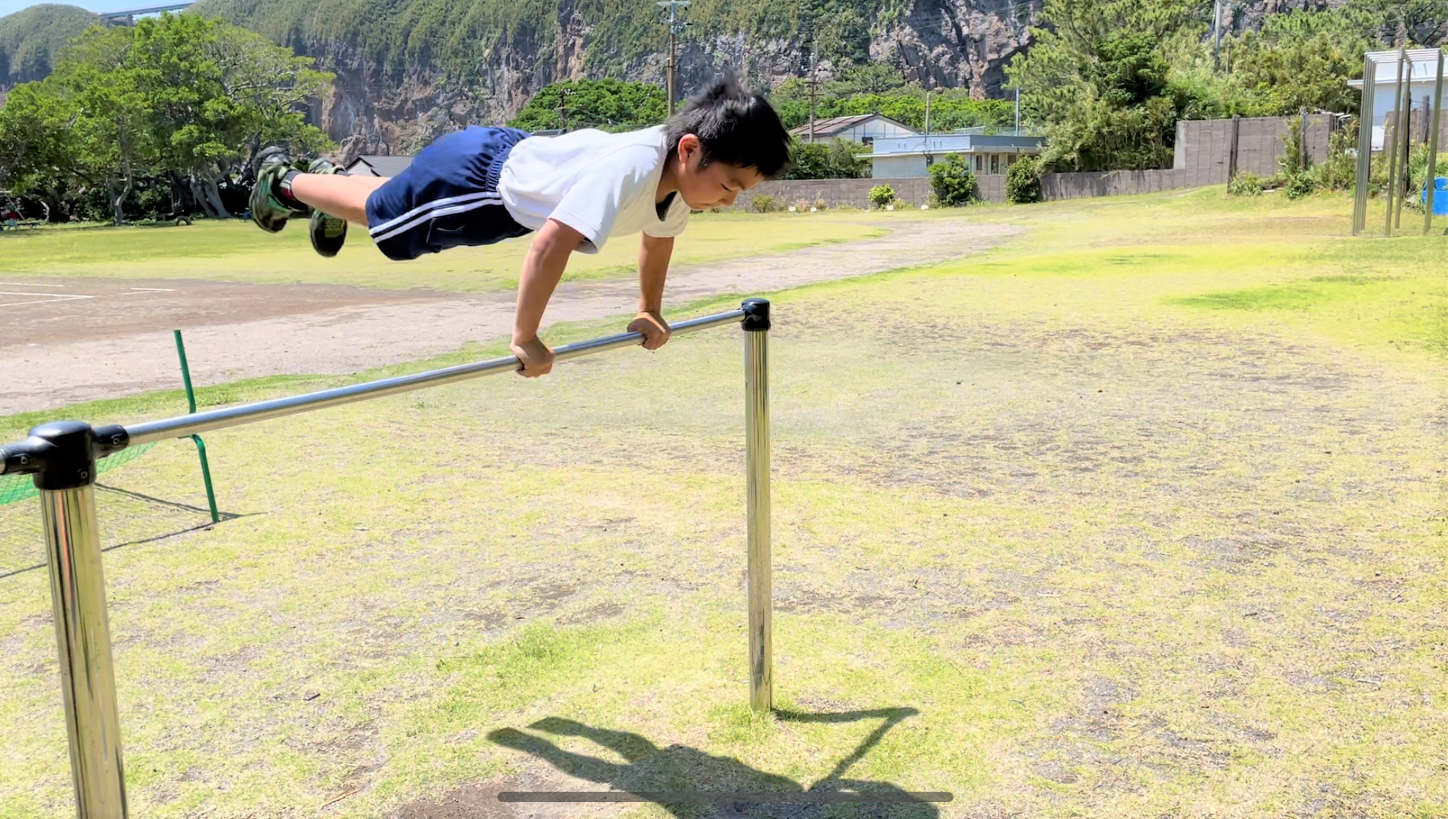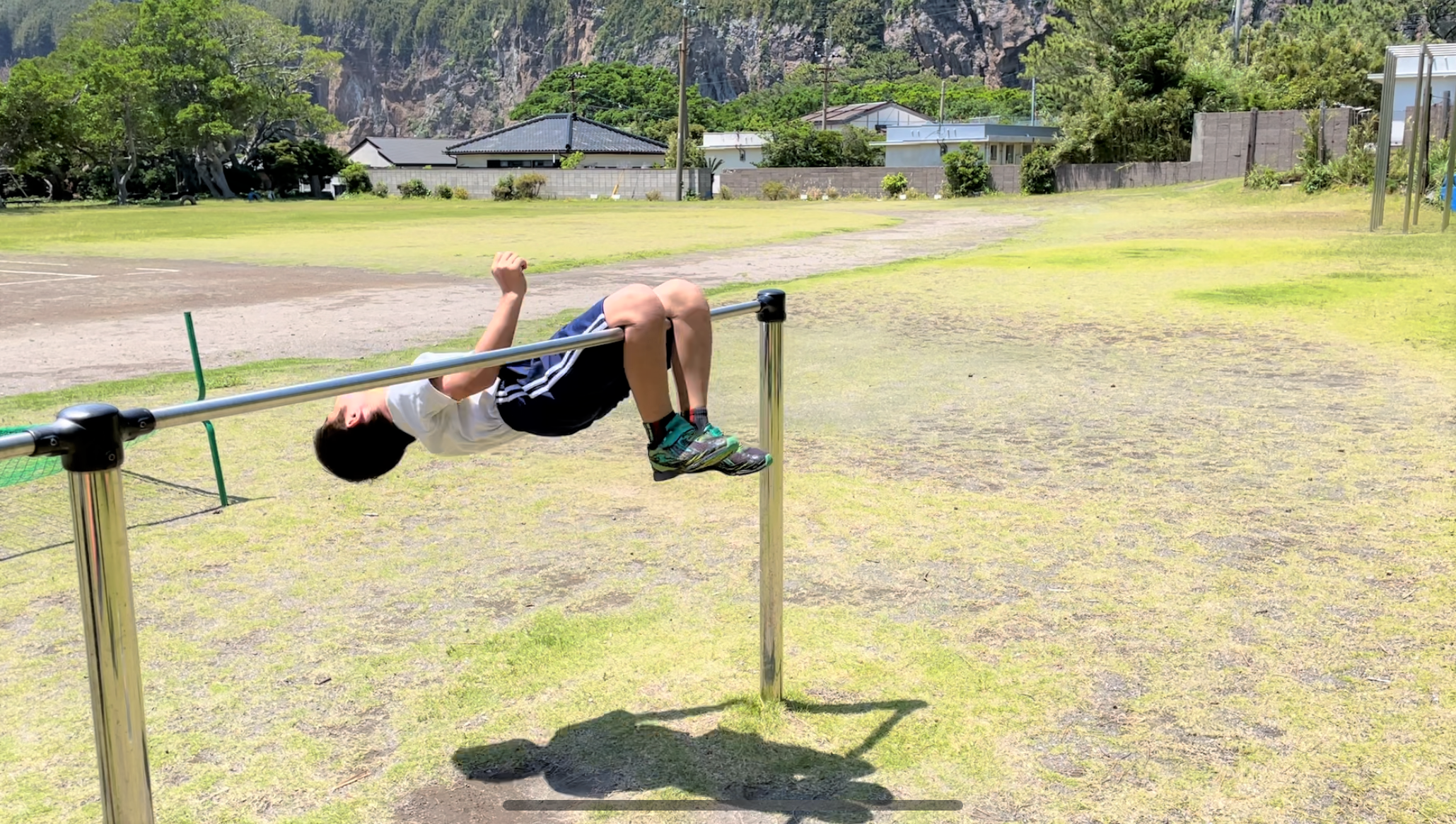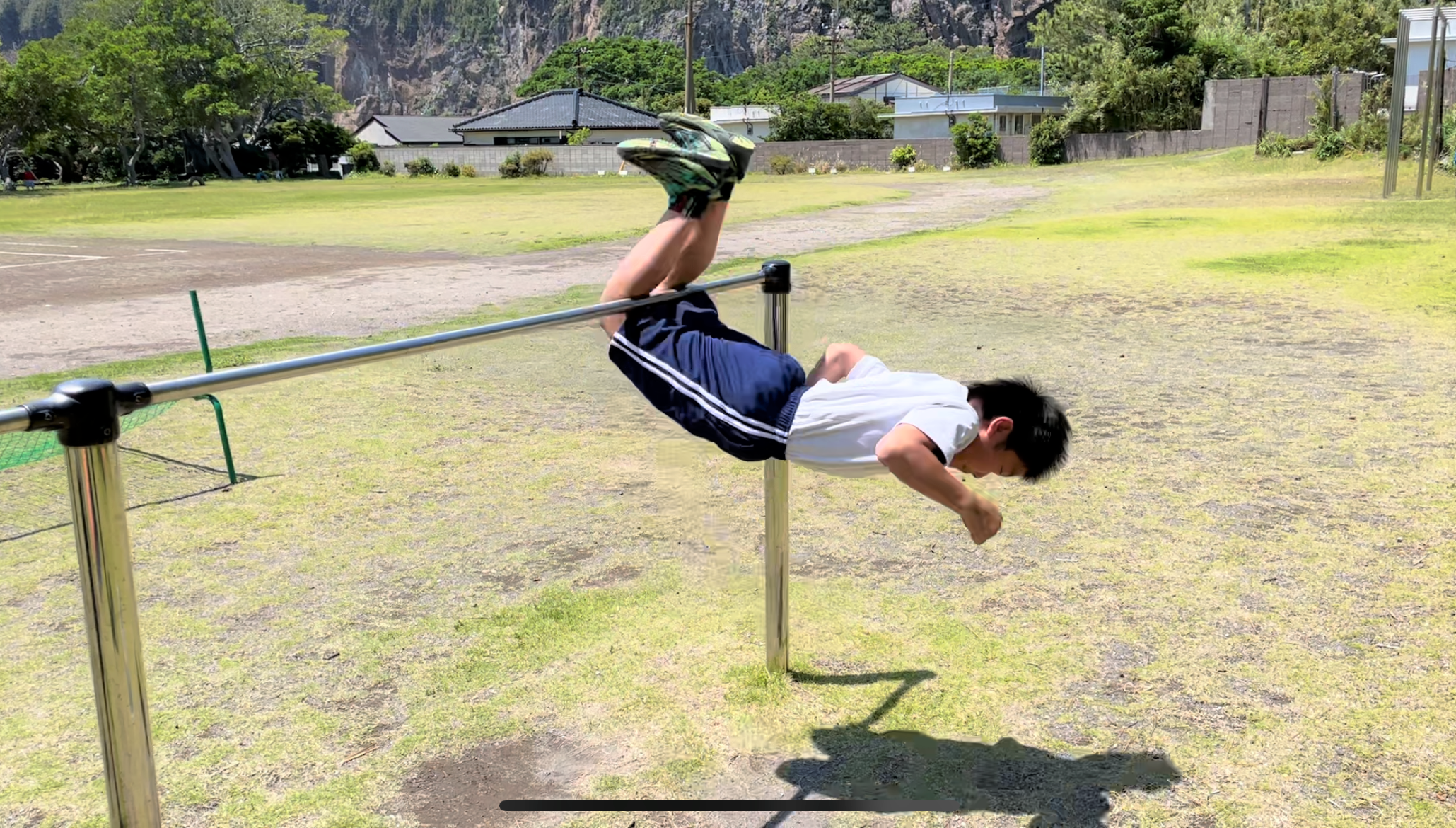 ②後方支持回転:鉄棒から思い切り離れて勢いをつけます!