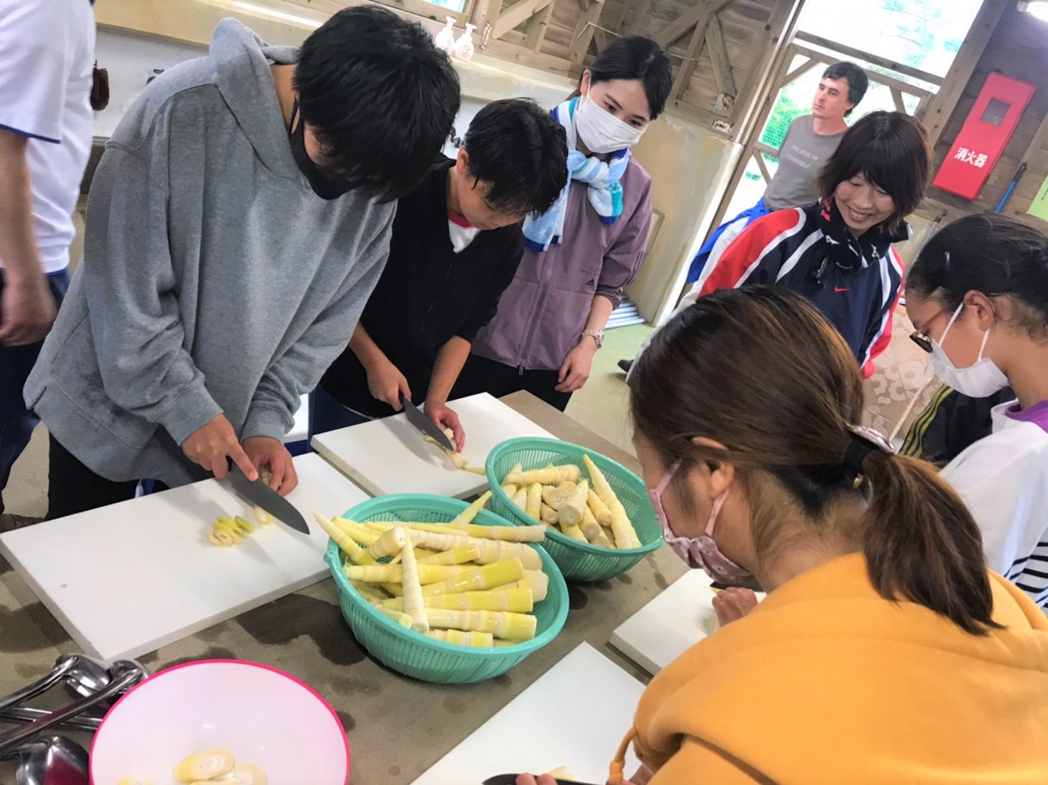 たけのこはみそ汁用のうす切りと,バター炒め用にざく切り。