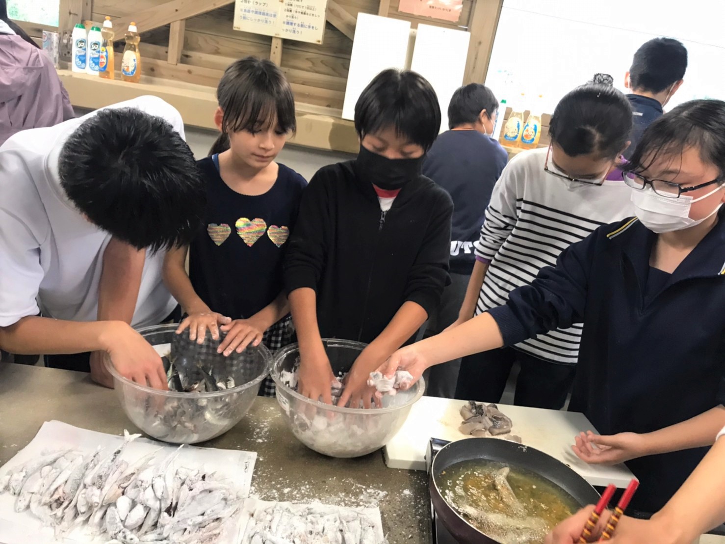 こちらはお魚。エラを取って内臓を取って・・・手でさばいた魚に片栗粉をまぶして揚げます!