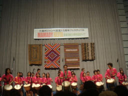| 三島村がジャンベ交流を始めて15年が経ちました。その記念に鹿児島と東京で公演を行いました。 みんなで心を合わせて,一生懸命に練習した成果をステージで発表し,最高の思い出を作ることが出来ました。 |
