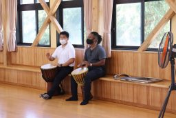ALTの先生は,さっそく学生を歓迎するジャンベや外掃除にも参加してくれました。