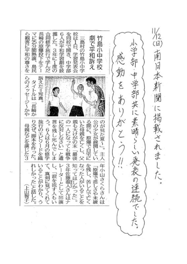 三島村立三島竹島学園~鹿児島県の三島村は「竹島」「硫黄島」「黒島」の三つの島から成っています。三島竹島学園は、本土に一番近い竹島の学校です。