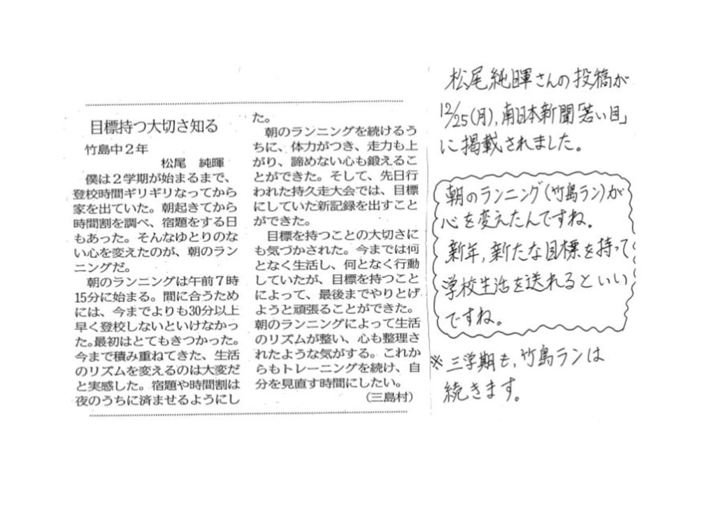 よく考え、思いやりがあり、がんばりぬく子 ~不屈の竹島魂「やればできる」~