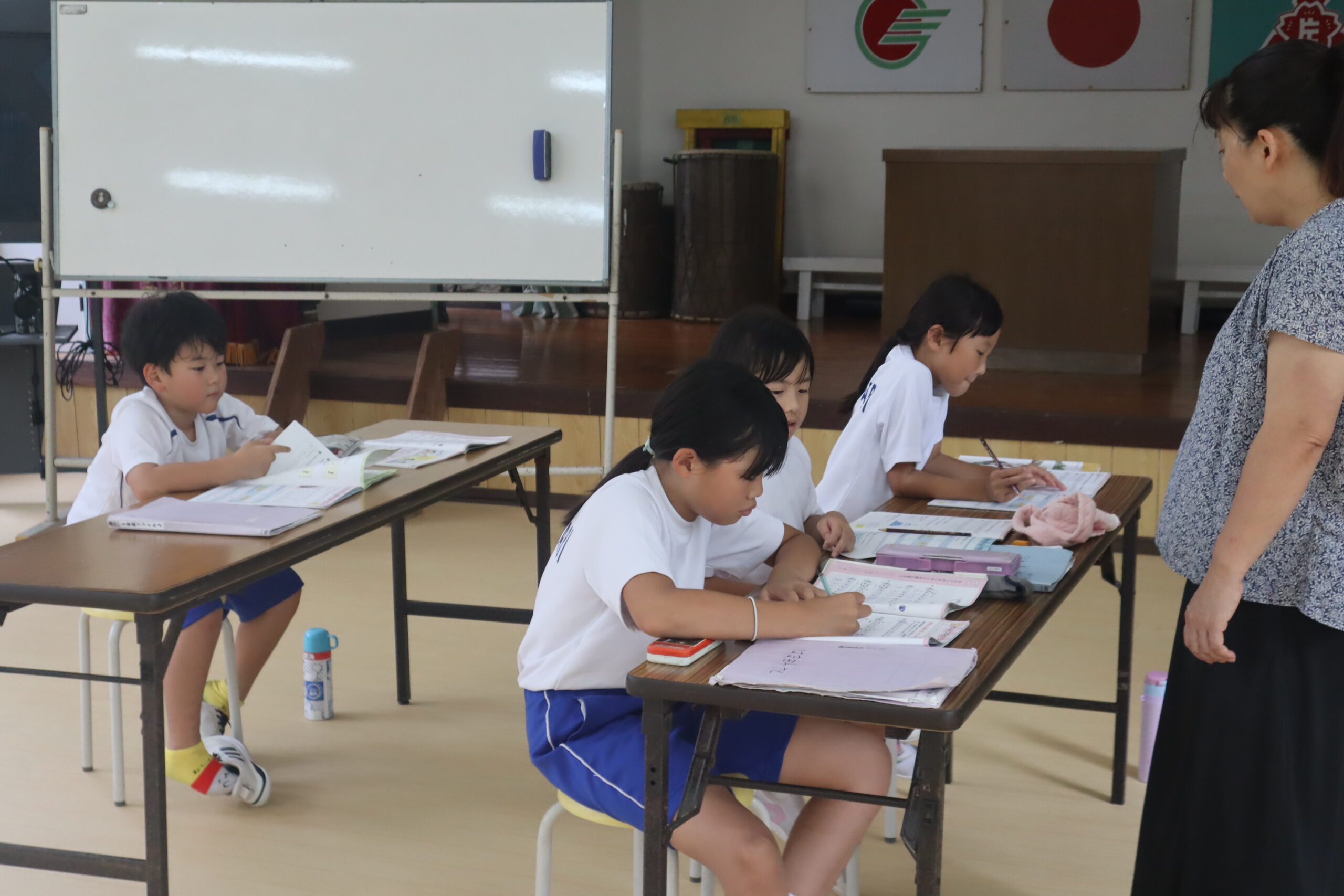 3・4年生は音楽の授業で、旋律の特徴を感じながら「富士山」「ゆかいに歩けば」を歌っていました。