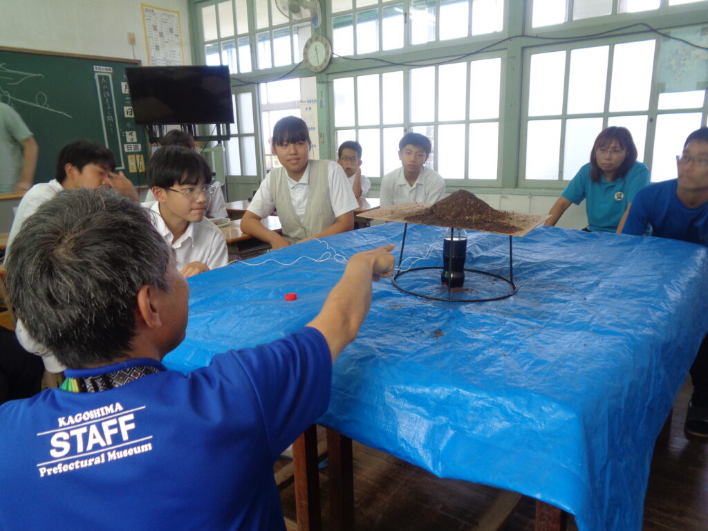 今日の午前は県立博物館から若松先生をお招きし,地学教室を実施しました。
