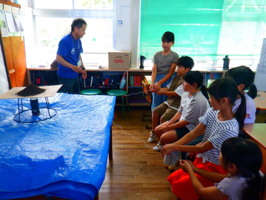 地学についての話やそれに関連する実験など,短い時間でたくさんのことが学べました。また,若松先生の話には「知らないって,面白い!」というメッセージもありました。知る喜びを感じながら,片泊学園の子どもたちとこれからも学び続けていきたいです。