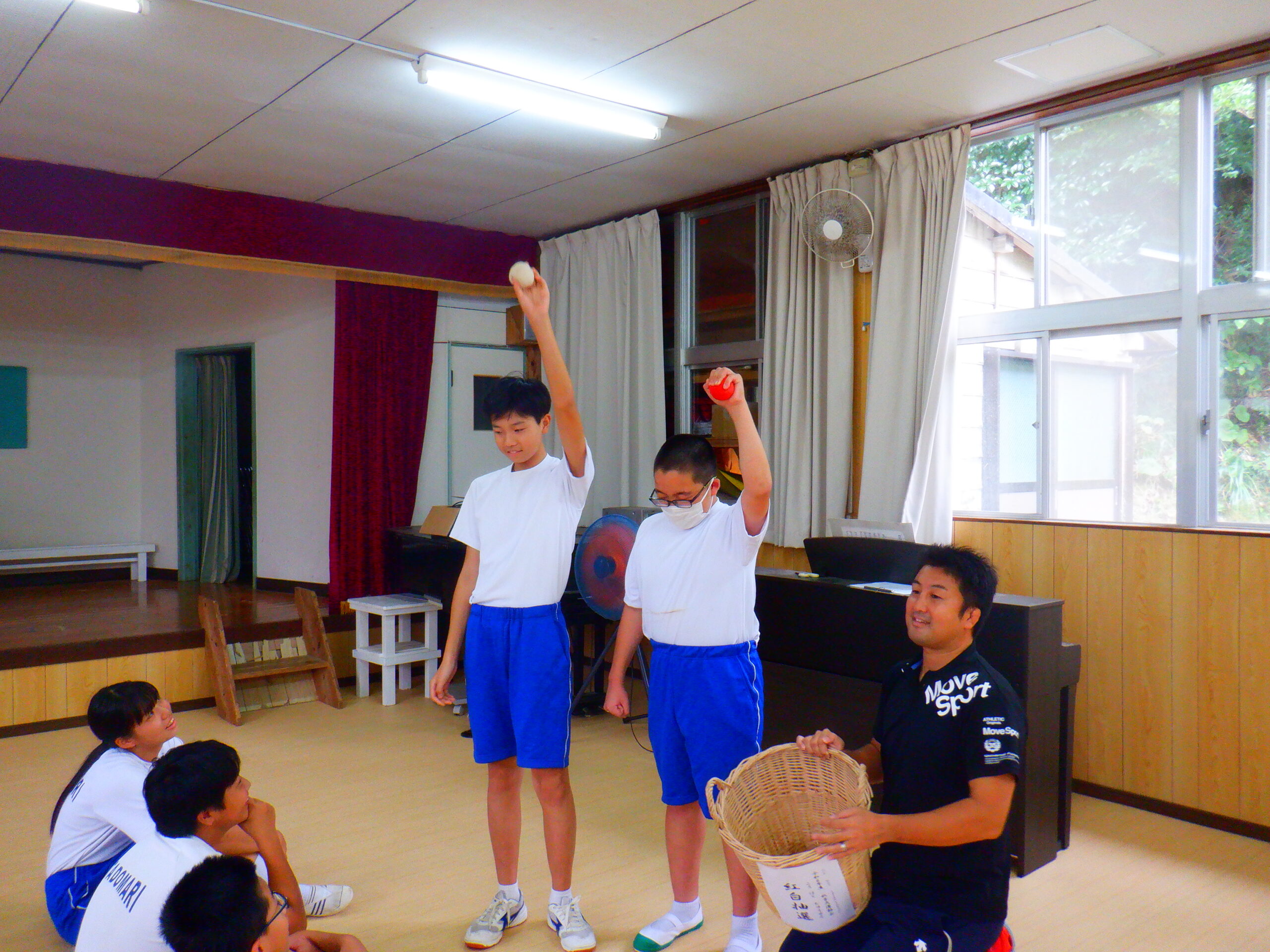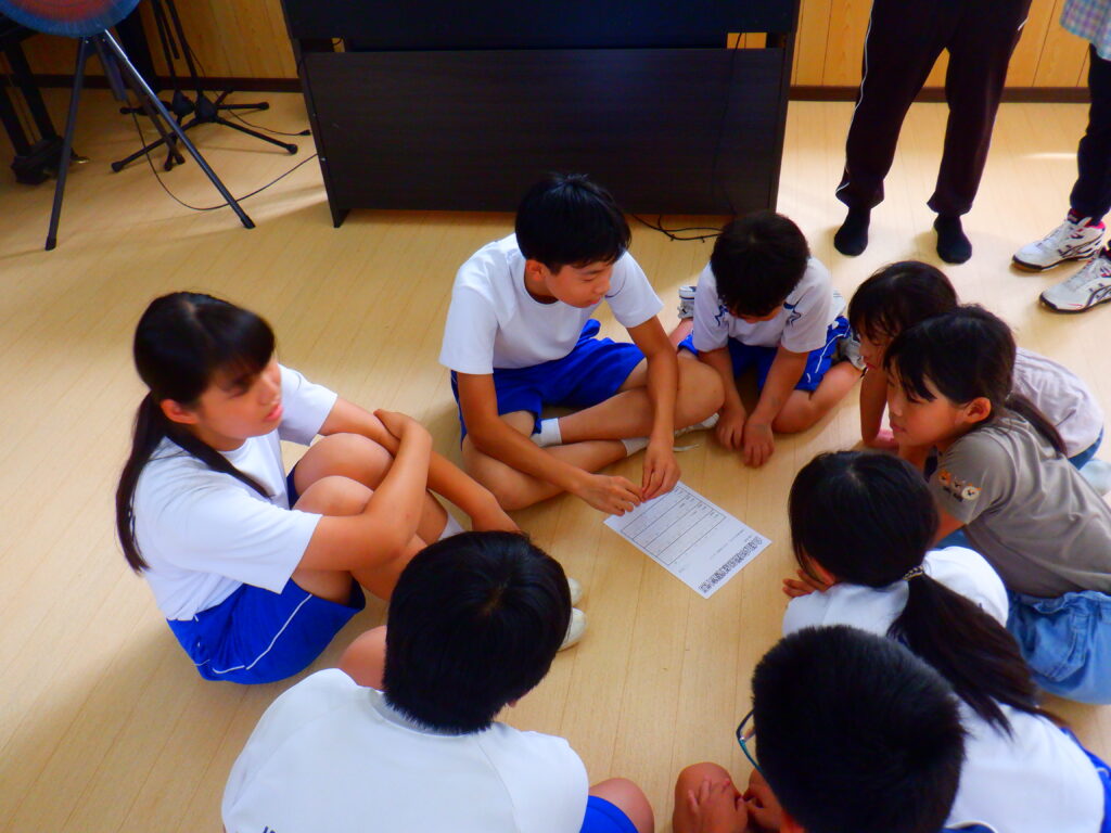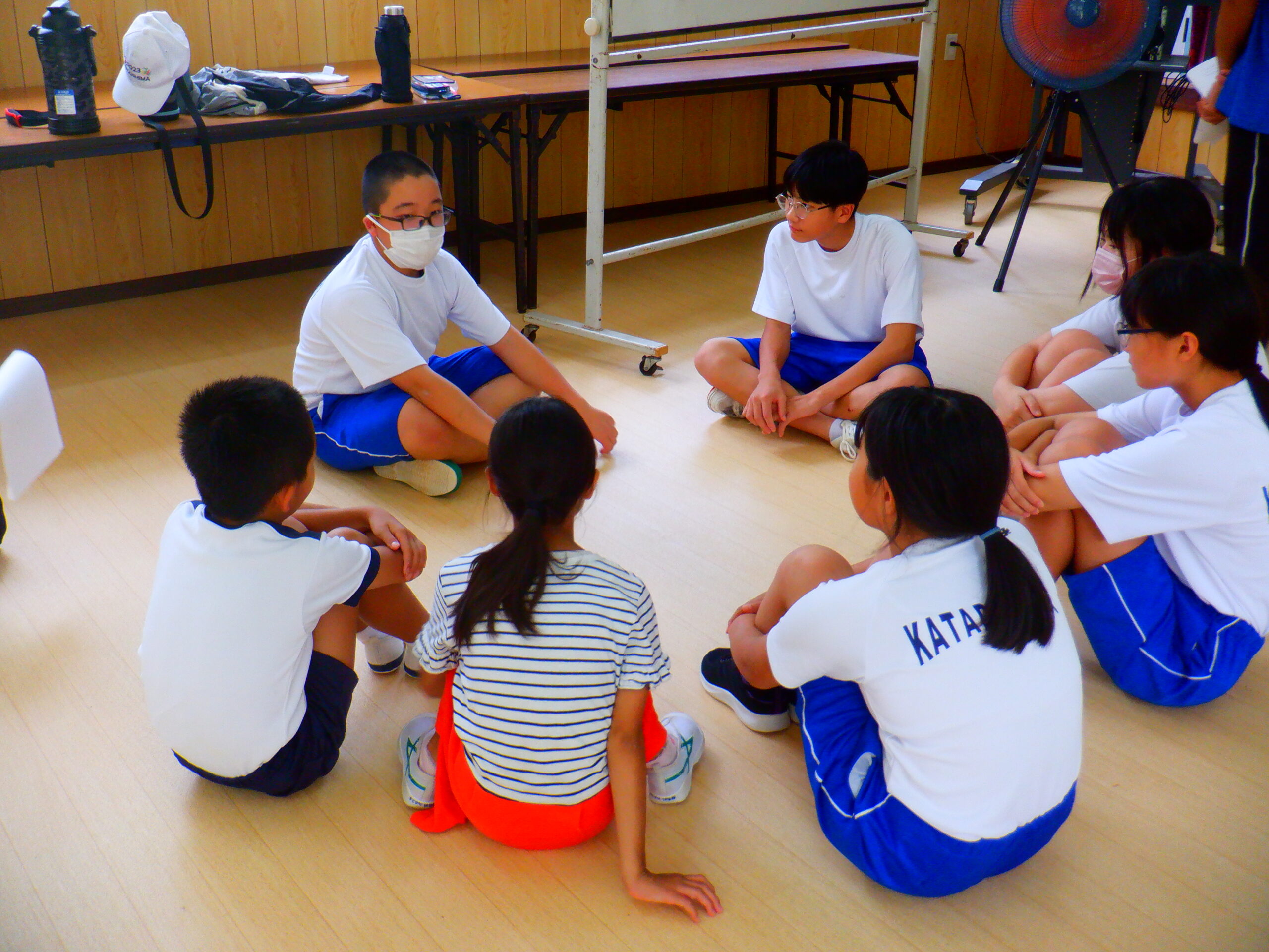 午後は,運動会のオリエンテーションを実施しました。全校児童・生徒が集まり,組み分けや競技種目について確認しました。ドキドキの紅白決めや,みんなで盛り上がる応援合戦の話し合いも行いました。今年の表現は,写真の一番最後にあるミニフラッグを使います。どのような仕上がりになるか,今から楽しみです。