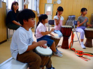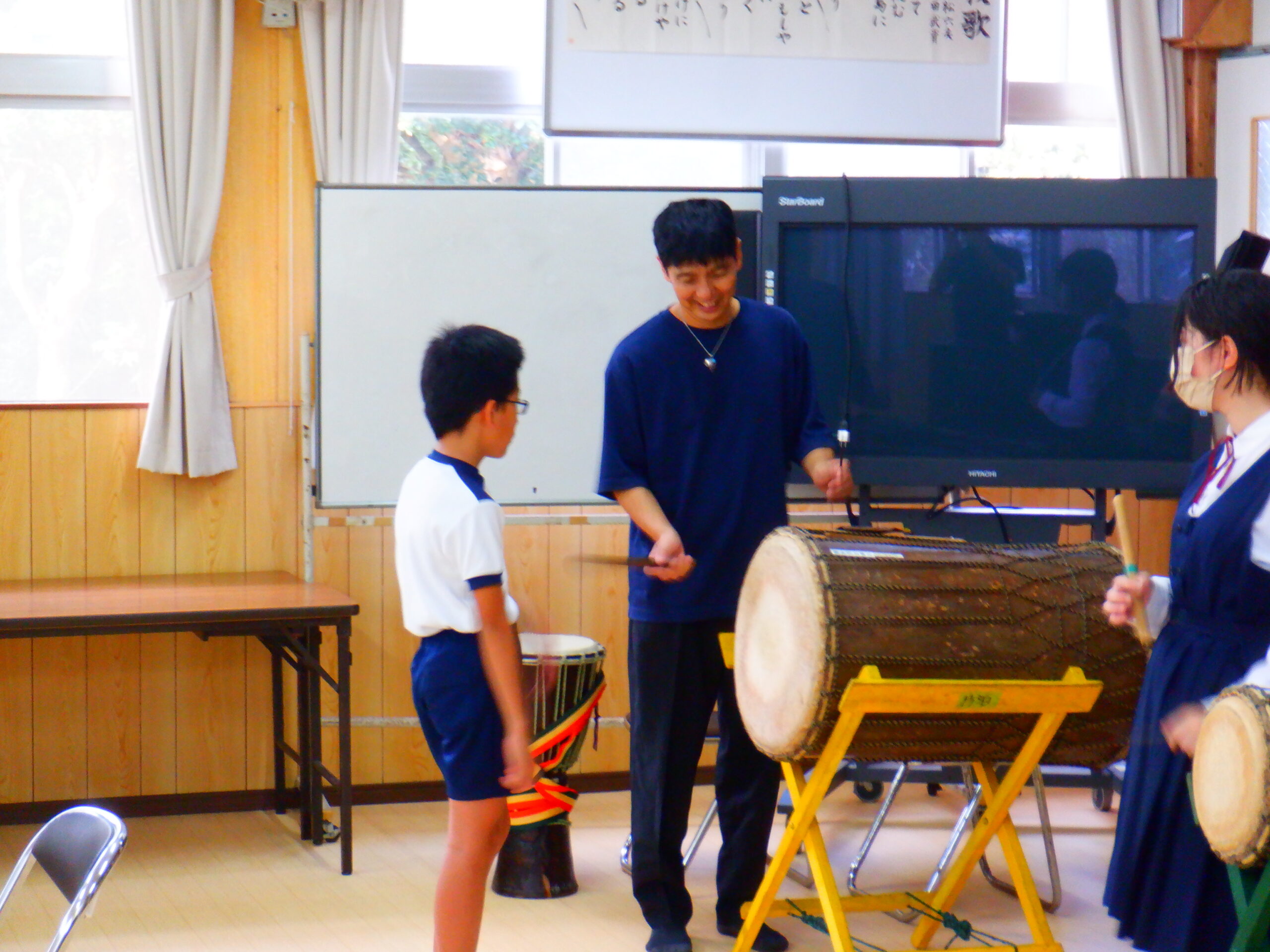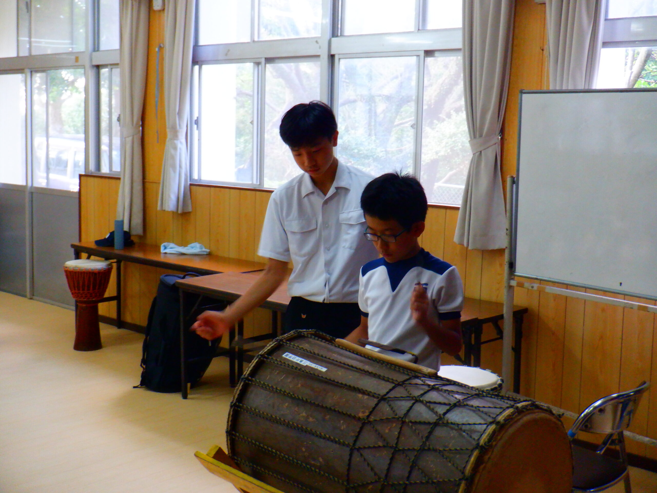 今日の放課後,徳田先生と一緒にジャンベ練習を行いました。