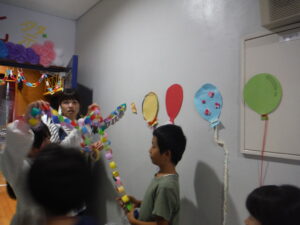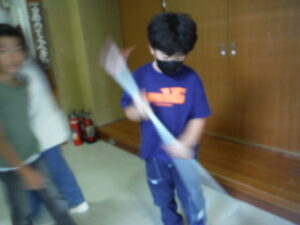 まずは,そうじをして児童生徒の作品の設営をしました。