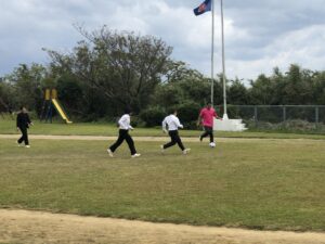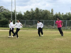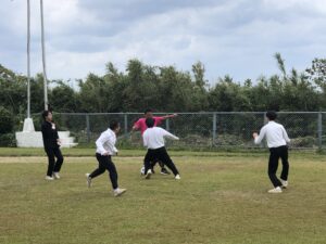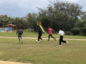 最近,後期課程生は昼休みに先生たちとサッカーをしています。