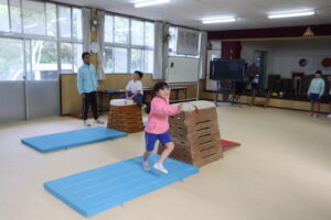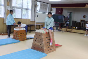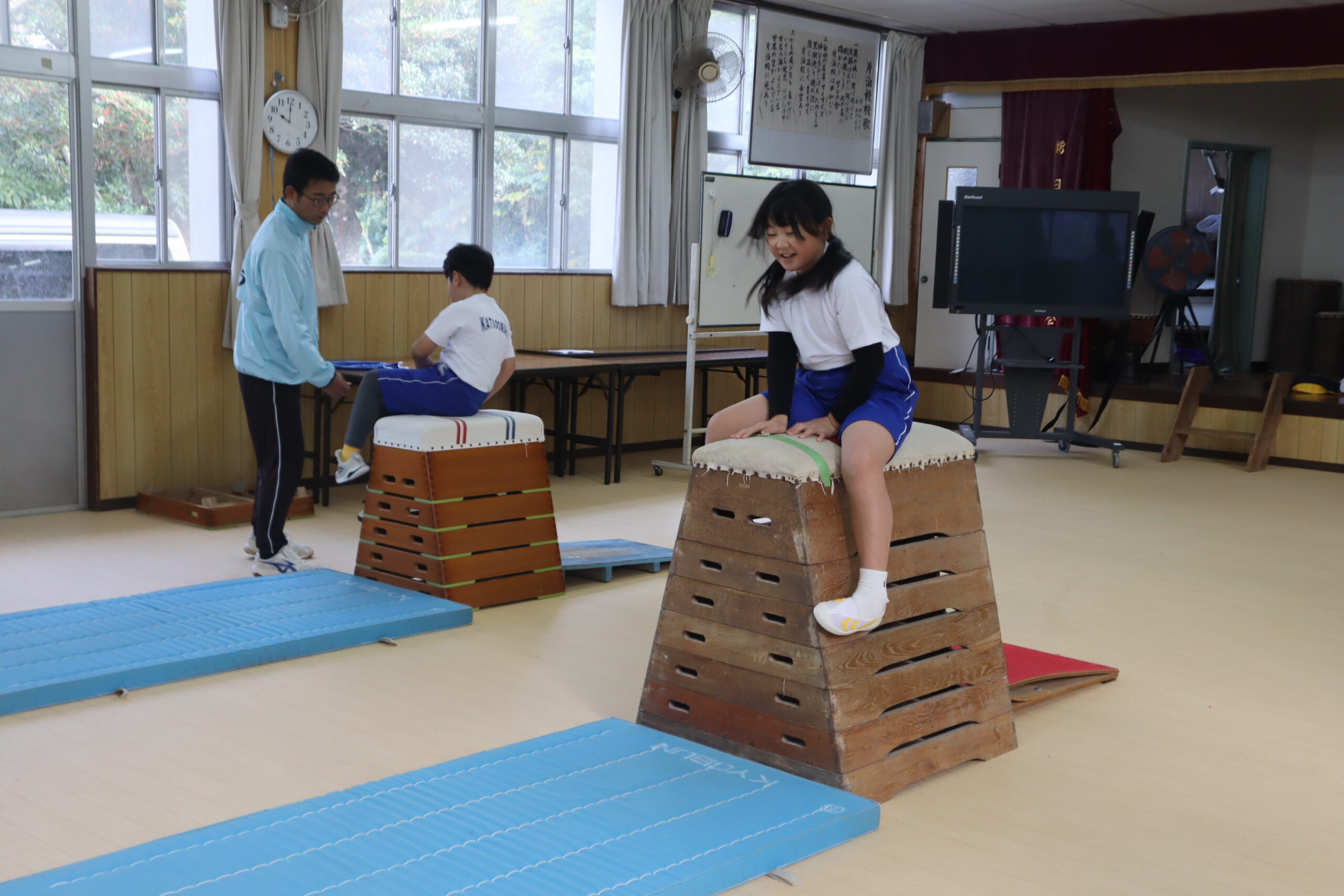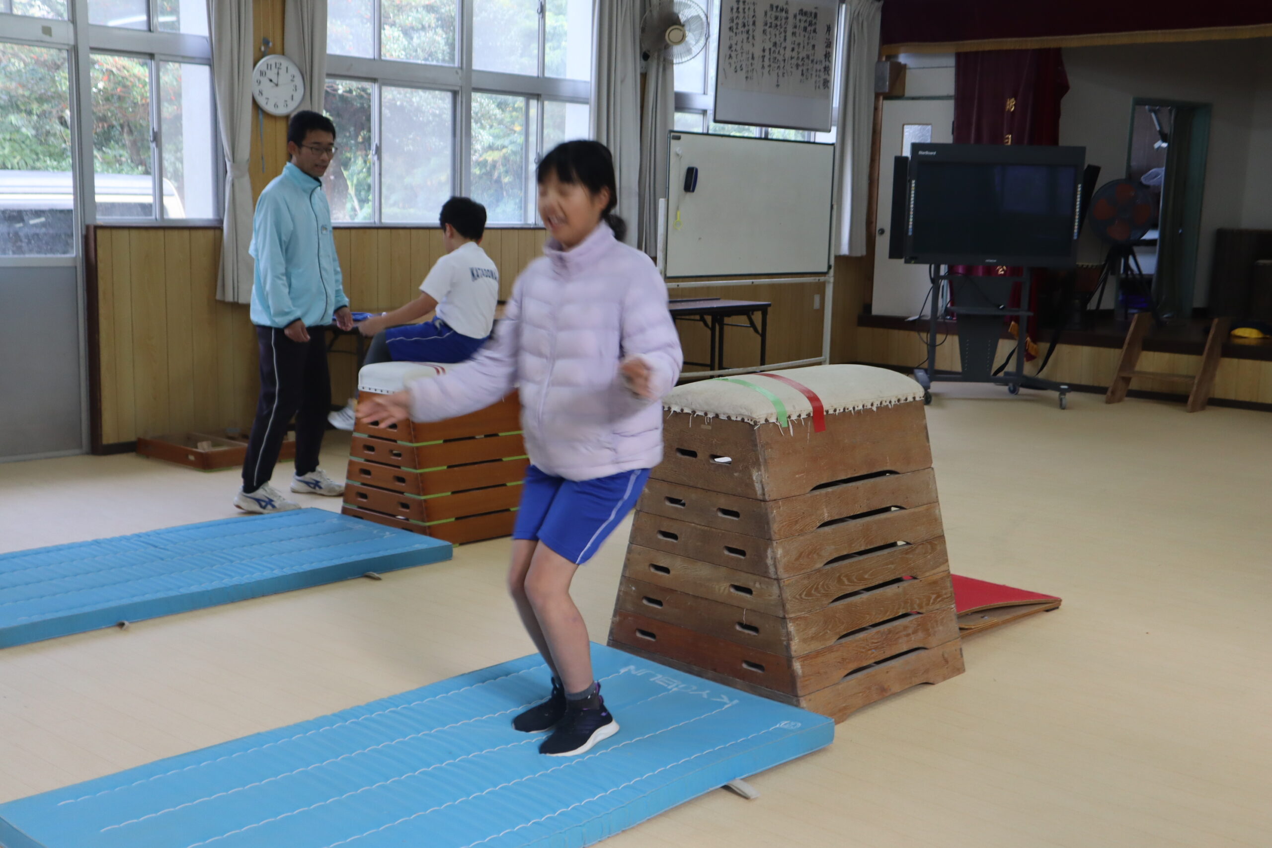 今日は、前期課程生の体育の授業で跳び箱運動がありました。 子どもたちは高さの異なる跳び箱にどんどん挑戦して、自分に合った跳び箱で”できた”喜びを味わうと、また一つ難易度の高い跳び箱に挑戦していました。 寒くなり、休み時間などどうしても教室に籠もりがちになってしまうので、運動量を確保することはとても大切です。 跳び箱に上がることや手の付く位置など、それぞれがめあてをもって練習をしていました。