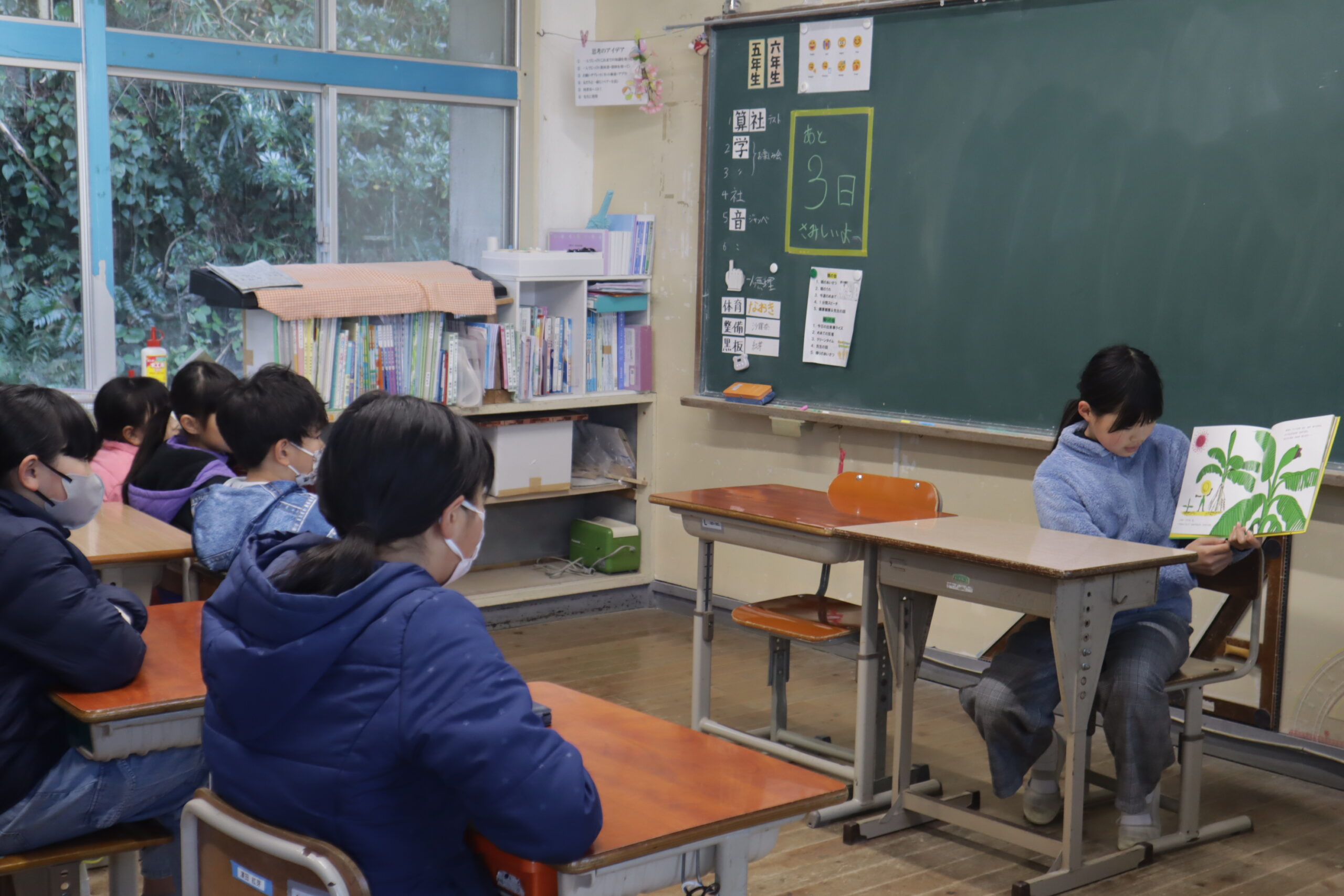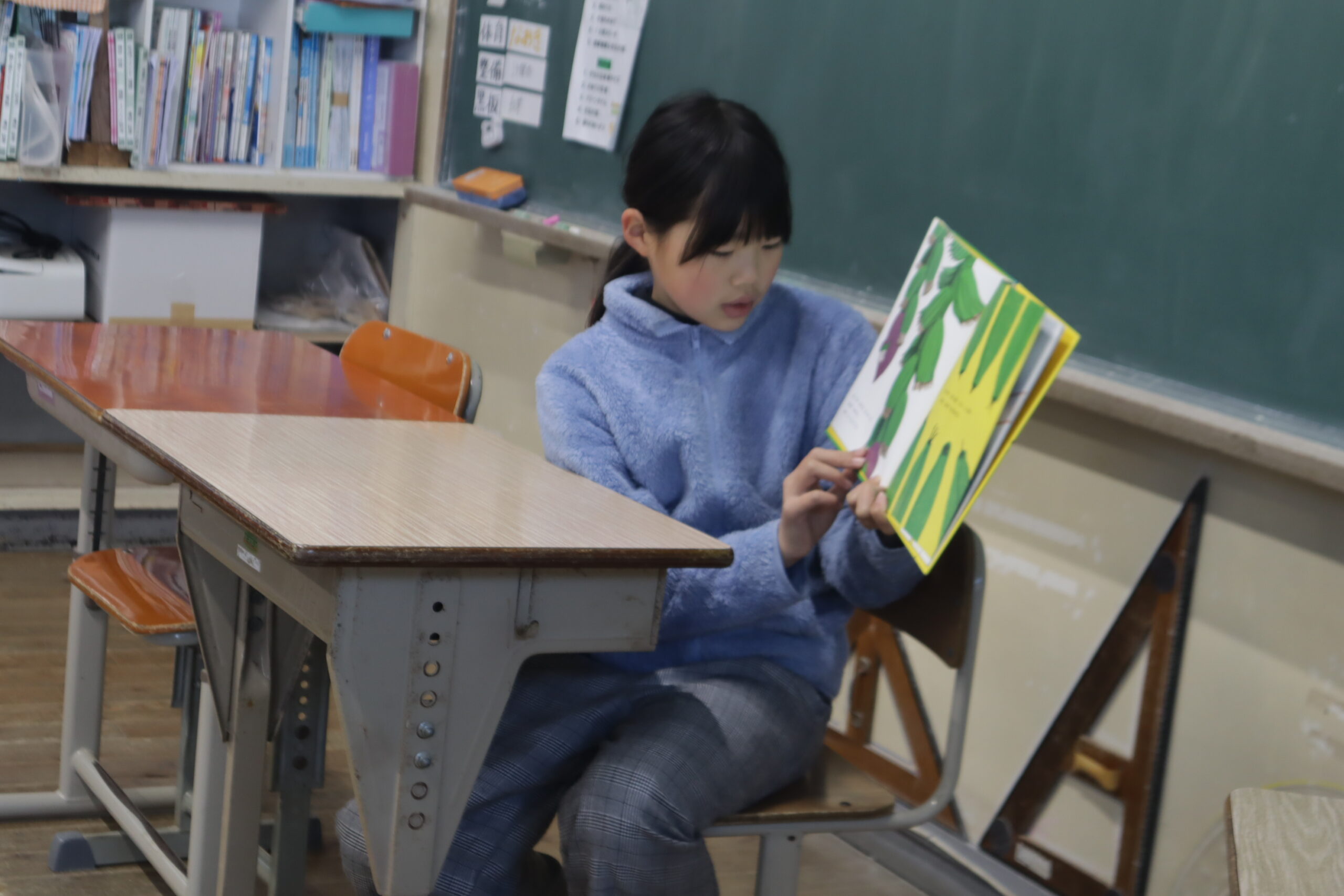 今日は文化委員会の4年生の児童が、前期課程生と後期課程生に 「バナナのはなし」という絵本の読み聞かせをしてくれました。 みんなの熱心な、まなざしが印象的でした。 バナナの成長過程や、食べごろの目安など、バナナについて知ることができ、 読み聞かせが終わるころには、すっかりバナナが食べたくなりました!
