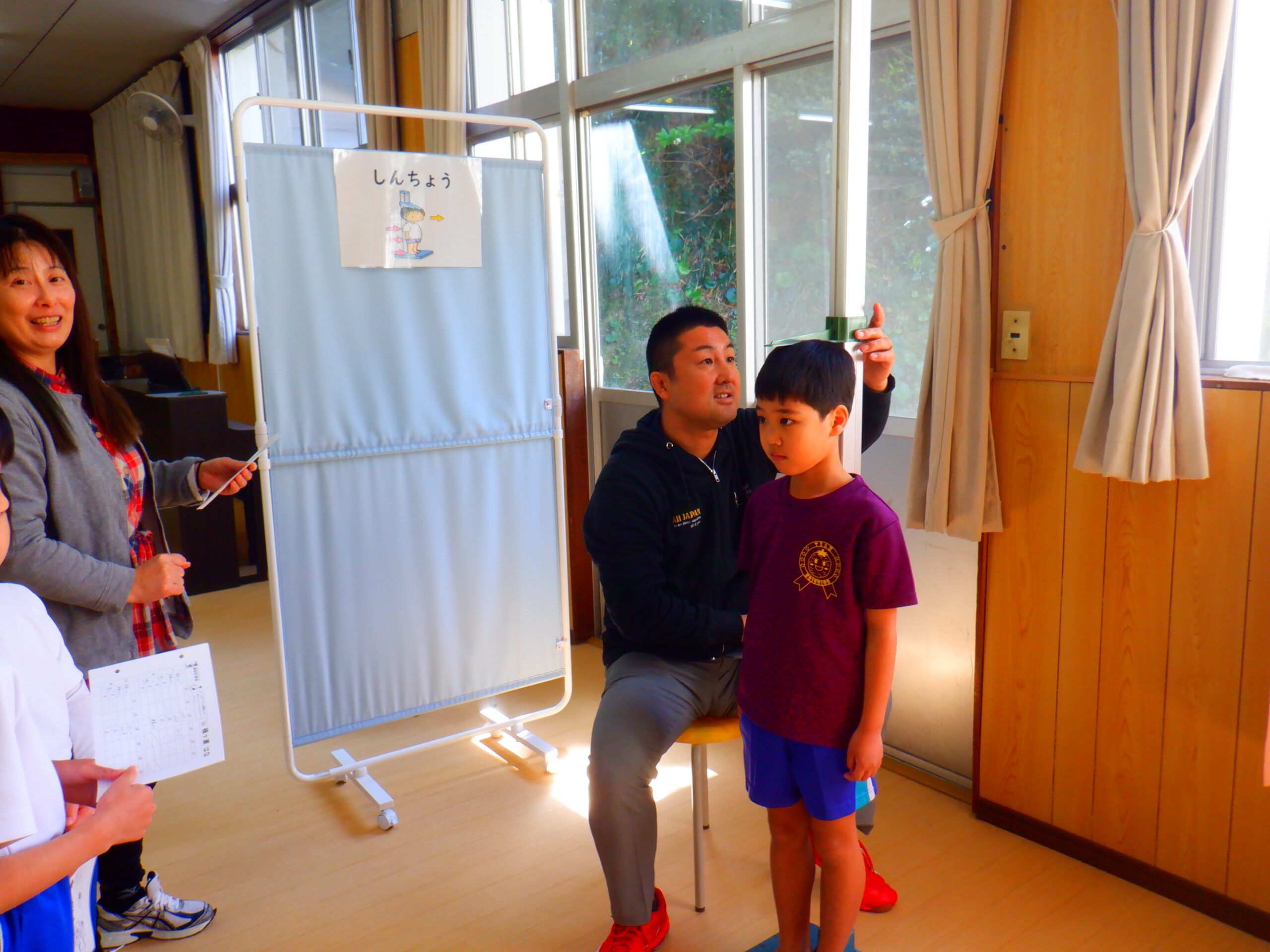 今日は、身体計測がありました。身長・体重・視力を計測しました。この1年間でどのくらい成長していたでしょうか?