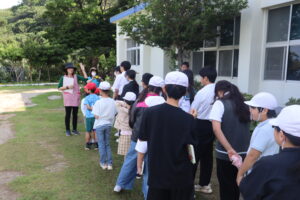 みんなで並んで片泊ふれあいセンターまで行きました。