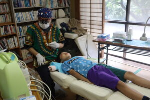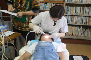 センターに着くと前期課程はセンター内で、後期課程はこじか号で歯科検診を行いました。