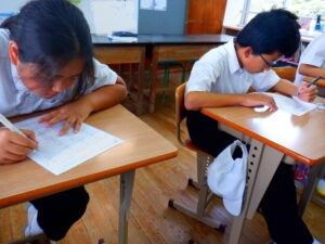 今日、4年生以上の学年では、「かごしまジュニア検定」がありました。