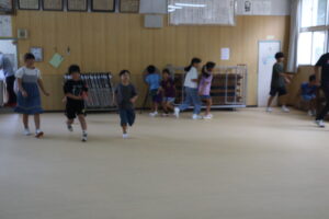 前期課程では、レクリエーションとして「だるまさんが転んだ」をしました。