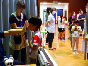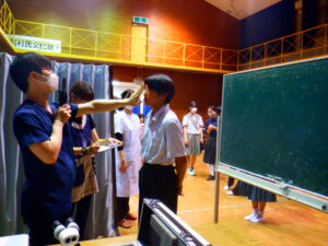 4年生以上は慣れた様子で検診を終えていましたが、ドキドキした表情で自分の番を待つ1年生の姿も見られました。しかし、いざ自分の番が来るとあっという間に終わり、ほっとしたのか、いつもの表情に戻っていました。