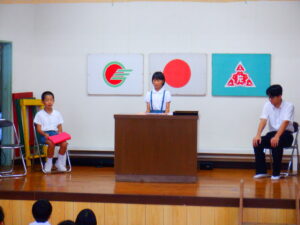 代表児童生徒3名が2学期の目標を発表してくれました。
