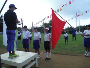 3・4時間目は最後の全体練習。開閉会式や入退場の動きを中心に行い、応援練習も頑張りました。