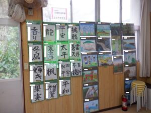 巡回作品展は、三島村の4つの学園から硬筆や習字、美術作品などを集め、展示・鑑賞するものです。
