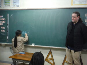 その後は,前期課程と後期課程に分かれて,英語の活動(LEタイム)に取り組みました。前期課程生は黒板に描かれた絵を英語で当てるゲームをしました。楽しみながら正解を目指し,正解すると嬉しそうな表情を見せる姿が印象的でした。