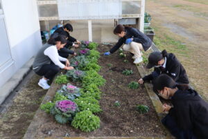 作業後には花壇全体がスッキリし,「きれいにできた」と生徒たちは嬉しそうでした。