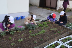 今日の朝の活動は,まず花壇の草取り(ちょボラ)からスタートしました。みんなで力を合わせて草を抜き,花壇をきれいに整えることができました。