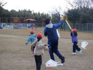一生懸命走ったりしてけっこうな高さまでたこがあがりました。