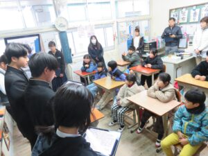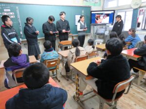 苗の植え替えが終わったら,2つめの活動「LEタイム(Let’s enjoy English タイム)」です。今日は,後期課程生がベトナムの生徒とオンラインで交流した様子を,前期課程生に紹介してくれました。学習した内容に加え,「知っている英単語で伝えること」「画面越しでもジェスチャーを使うこと」など,英語で交流する際のポイントの発表もありました。前期課程生にとってベトナムのことを知るだけでなく,後期課程生の学習の様子も知ることができるよい機会になりました。