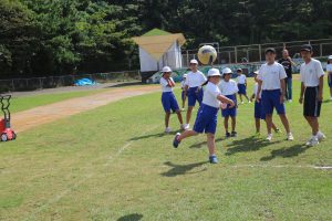 今日はみんなで昼休みに王様ドッジボールをしました。 何人当たっても王様に当たらなければ負けませんし,たった一人でも,王様だったら負けという心理戦もはらんだドッジボールです。 誰が王様か推理しながらするので,体だけでなく,頭もいっぺんに鍛えられるゲームです。 今日はALTのジェームズ先生も一緒に,汗だくになりながら楽しみました。