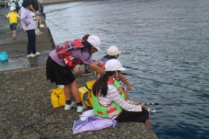 今日は,毎年恒例の釣り遠足が開催されました! 先日,仕掛け教室の際に,大漁の願いを込めて自分たちで準備した釣り竿で,さあ魚釣りへレッツゴー!! 毎年協力をいただいている三島村役場・県の方や,地区の方々に釣りのコツを教えていただきながら,釣れた人も釣れなかった人も,みんなが釣りを堪能したようでした。 午後からは,捌き方教室が行われました。中学生は,毎年教わっているので,手際よく捌くことができました。 今夜は,自分たちで釣ったお魚で夜ご飯を楽しむことでしょう♪