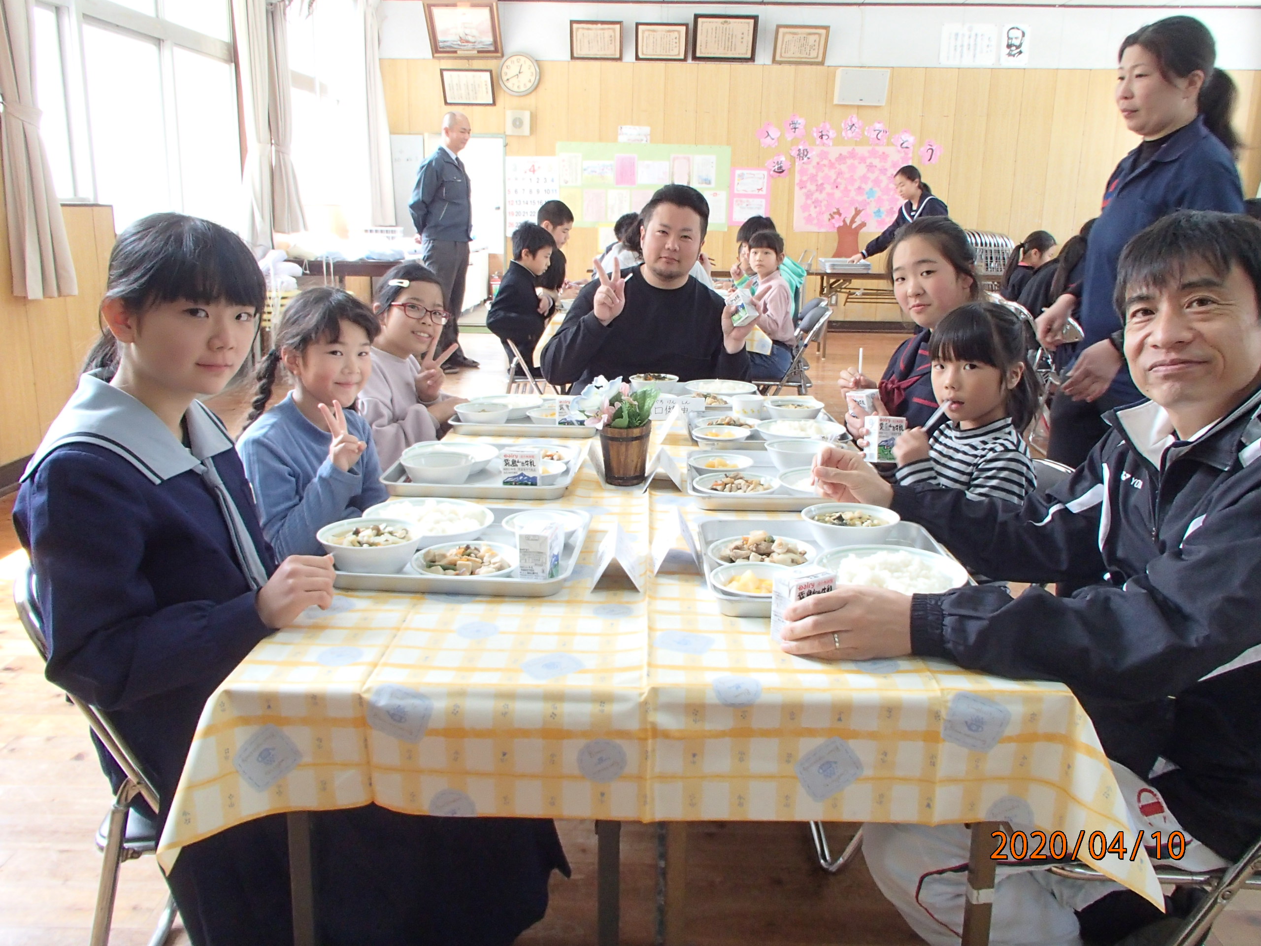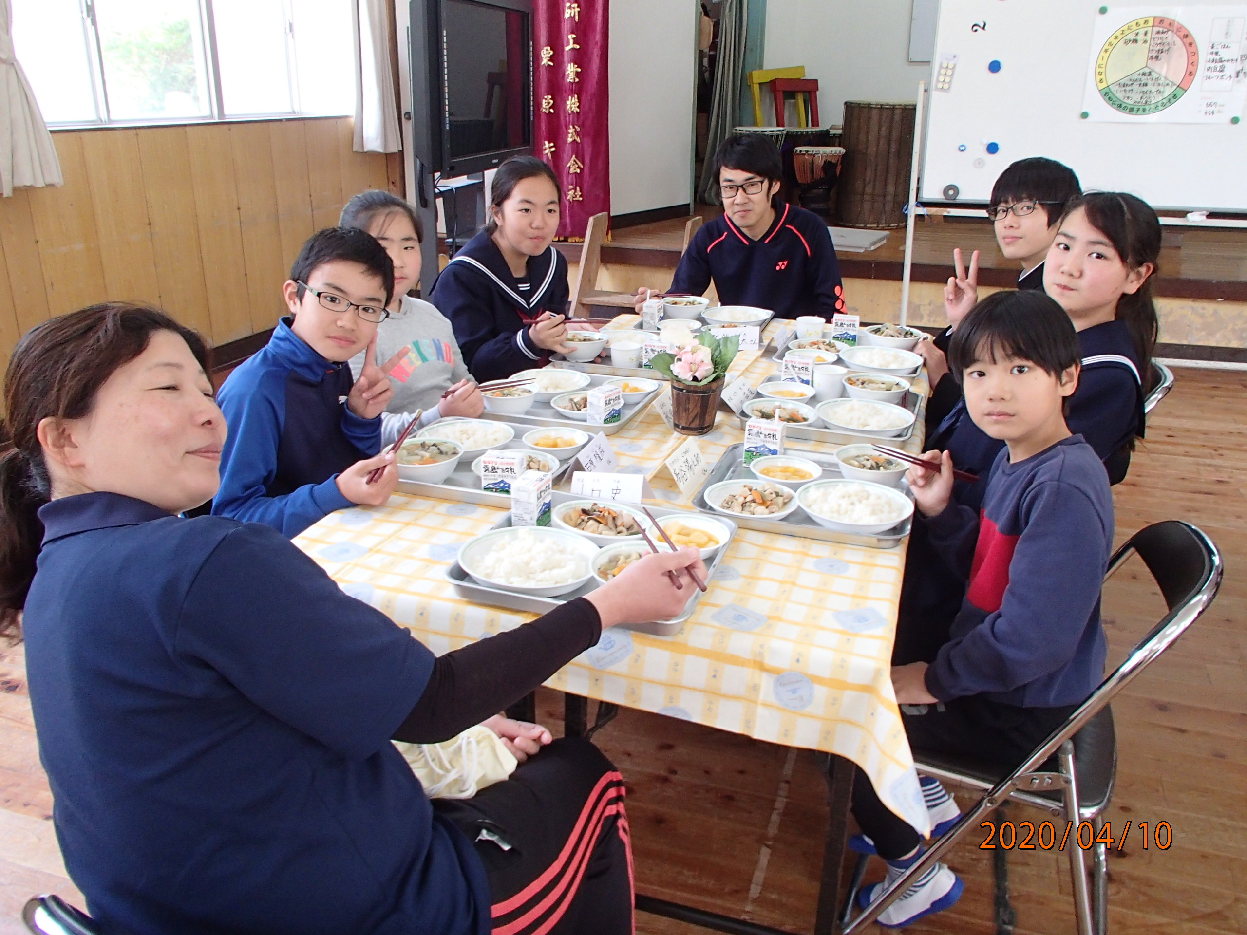 4/10(金)に合同給食がありました。合同給食では、全児童生徒と職員みんなで一緒に給食を食べます。いつもの給食とは雰囲気がちがって、楽しくおいしく給食を食べることができました。
