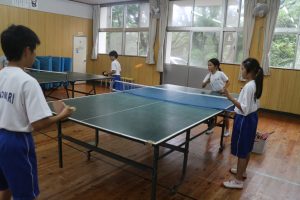 4,5,6年生は、1学期最後のクラブ活動で「卓球」をしました。ペアを作ってラリーの練習をした後、トーナメントで試合をしました。ラリーが続くのはもちろん、空振りするのも楽しそうでした。