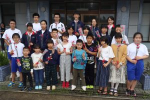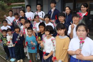 毎年母の日に,花屋さんのない離島の子供たちにと鹿児島市にお住いの田知行さんがカーネーションを送ってくださいます。 いつもは恥ずかしがって,親に「ありがとう」となかなか言えない子どもたちですが,田知行さんにそのチャンスと勇気をいただき,気持ちを伝えることができました。 これを機会に,普段から感謝の気持ちを言葉や行動で表現できるようになってほしいです。 田知行さんいつも本当にありがとうございます。
