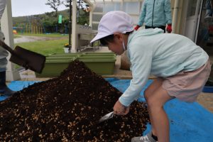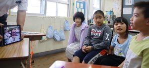 5/18(火)5時間目に3・4年生の外国語の授業があり,三島村役場にいるALTのスティーブン先生と遠隔授業が行われました。遠隔授業では子供達の笑顔があふれていました。一方,外では2年生のさらなさんが生活科で野菜を育てるための土づくりを頑張っていました!