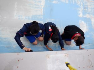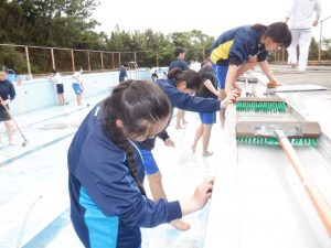 6月からの水泳学習に向けて,片泊・大里合同でプール掃除がありました。1年ぶりの大掃除なので,気合いを入れて取り組んでいました。子どもたちは,きれいになったプールを見て,とても満足そうでした。水泳学習が待ち遠しいですね♪