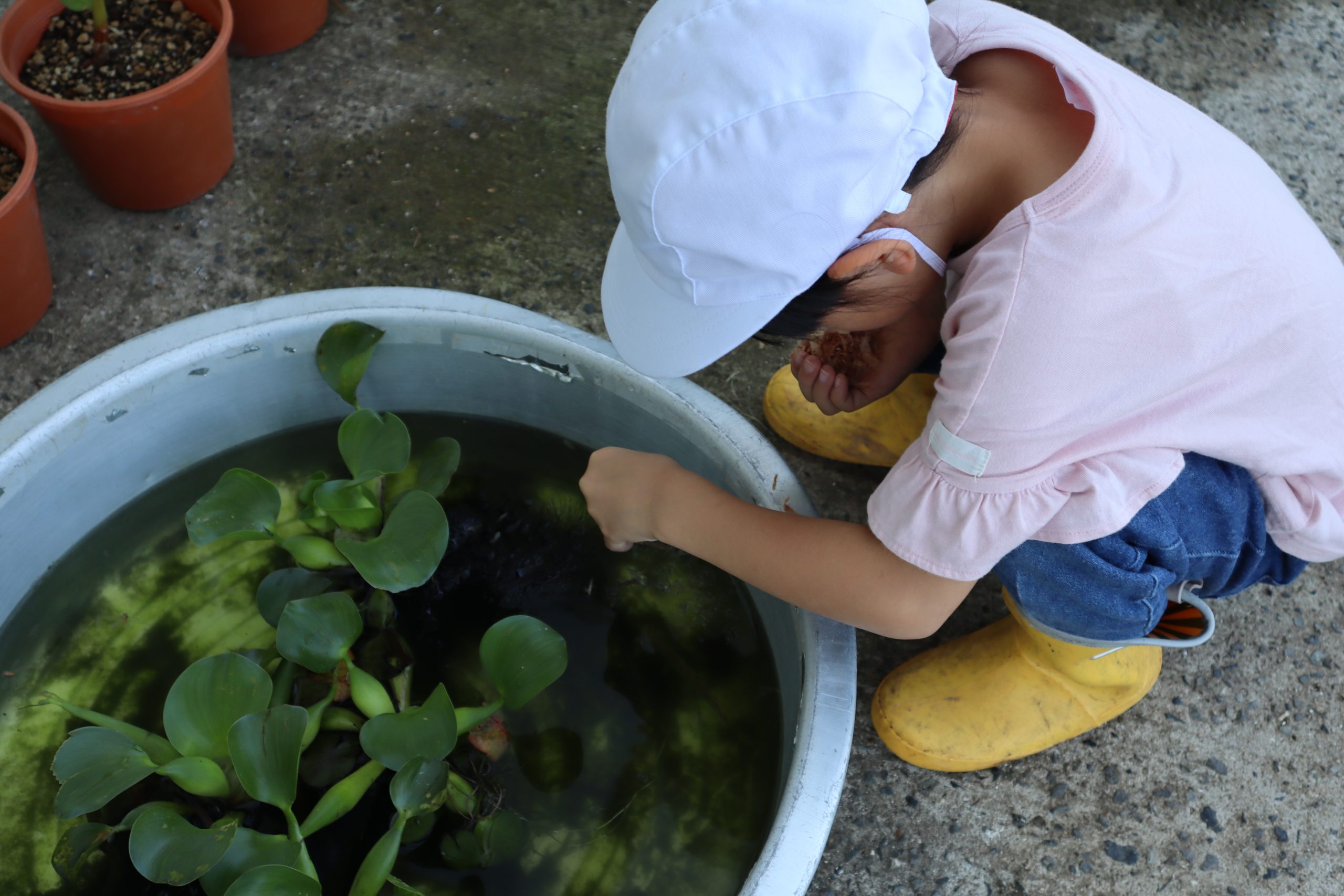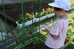 2年生の生活科の学習できゅうりやにがごりの栽培とおたまじゃくしのえさやりをしました。おいしいやさいができるといいですね。楽しみです。また,おたまじゃくしもカエルに成長していました。すごく感動的でした。