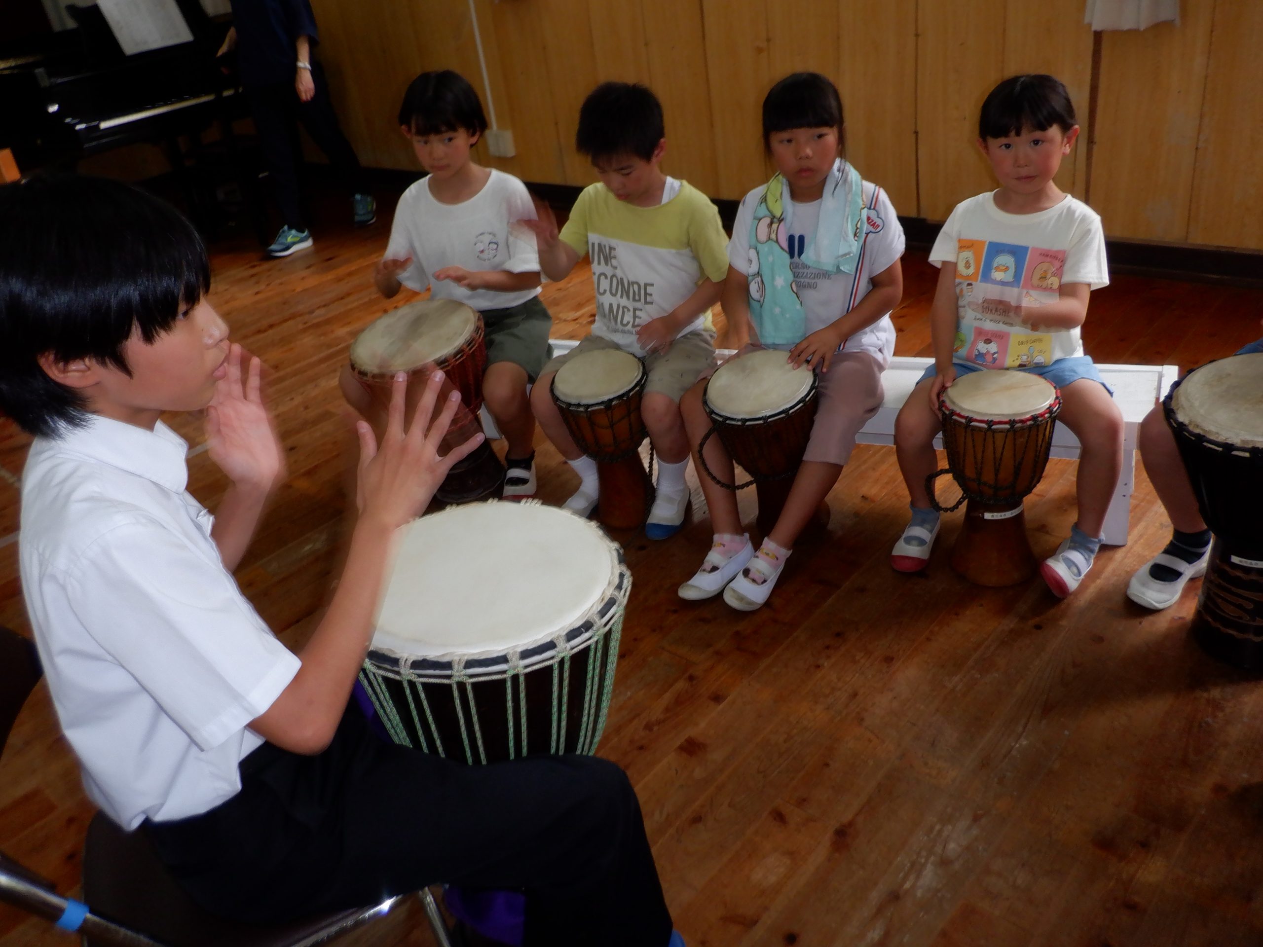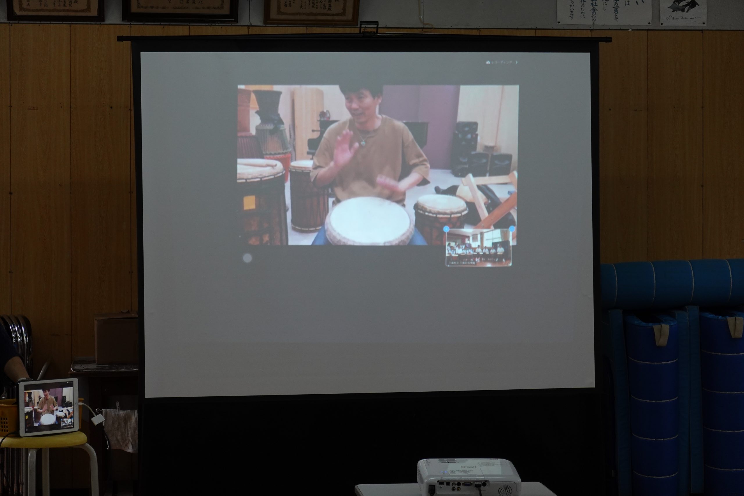 昼休みには子どもたちが中心となってジャンベ練習を行い,放課後には徳田先生に遠隔でご指導いただきました。