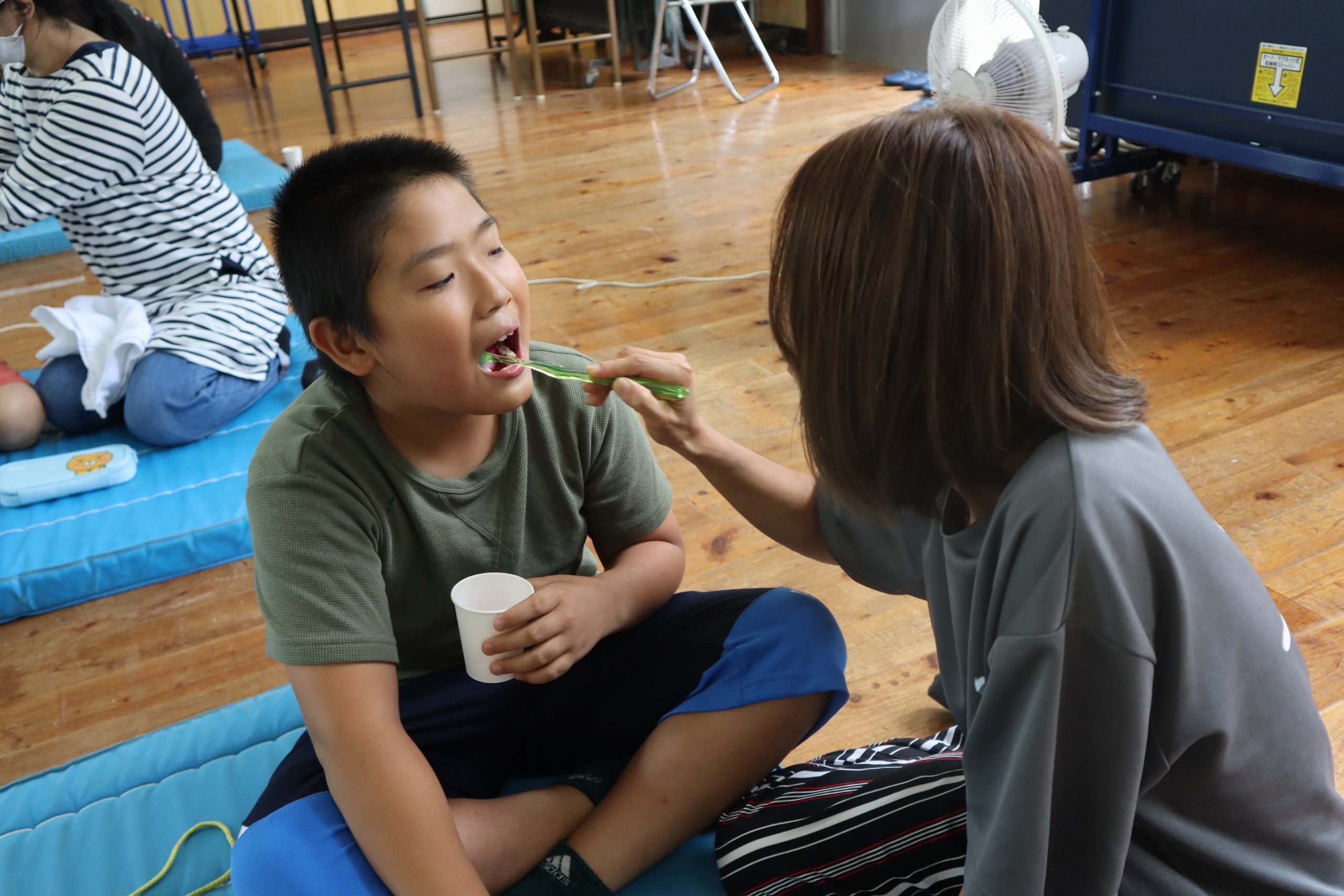 今日は,授業参観がありました。 子どもたちは,朝から(前日からの子も)楽しみにしていました。 前期課程の子どもたちは,合同での学級活動で「親子歯磨き教室」を行いました。 最後に,お家の方に仕上げ磨きをしてもらい,照れながらもうれしそうな子どもたちでした。