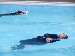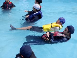 7月14日の5校時,水の事故を未然に防ぐために着衣水泳がありました。いつも水着で泳ぐのとは違って,衣服を着たまま水に入ると,泳ぎにくくなることを実感していました。そこから,慌てず動かず力を抜いて,浮くようにすることを学んでいました。いざというときに,この学習したことを生かして,自分の命を守ることにつなげてほしいです。