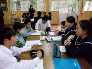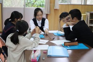 10月30日(火)に、毎年恒例の「いも会食」が行われます。 いも会食とは、高齢者の方と一緒に苗を植え、収穫したいもを給食の時間に一緒にいただく行事です。 給食を食べた後にはレクリエーションを行い,高齢者の方々と親睦を深めたいと思っています! その時の活動計画を5時間目に話し合いました。 児童生徒が3グループに分かれ,後期課程生を中心に種目を考えました! 色々な出し物を計画しています。 当日,みんなで楽しめるといいですね!