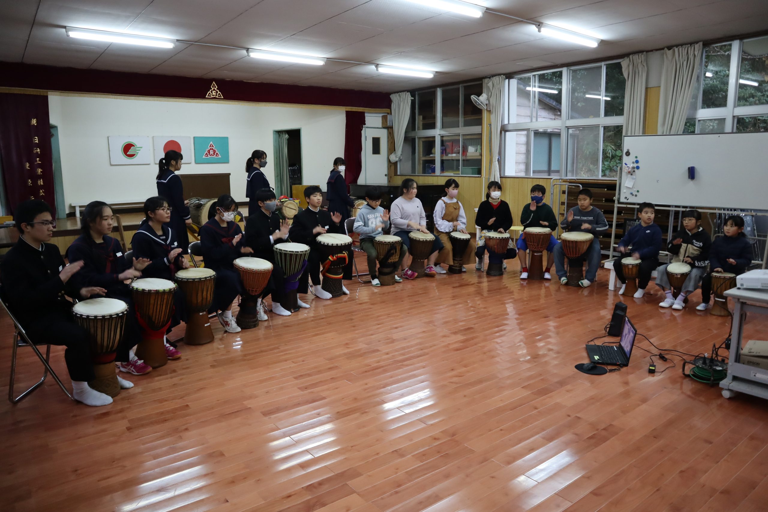 今年度最後のジャンベ教室が,コロナのため遠隔で行われました。 来年度に向けて新曲「ディリバ」(ダンスの曲)を練習中です。 対面でないと,手の動きなどよくわからないのでみんな苦戦しているようです。 徳田先生に直接指導していただいているときは,子どもたちの表情も音色も格段に素晴らしいです。 一日でも早くコロナが治まって,徳田先生と一緒にジャンべを演奏する日が待ち遠しいです。