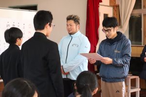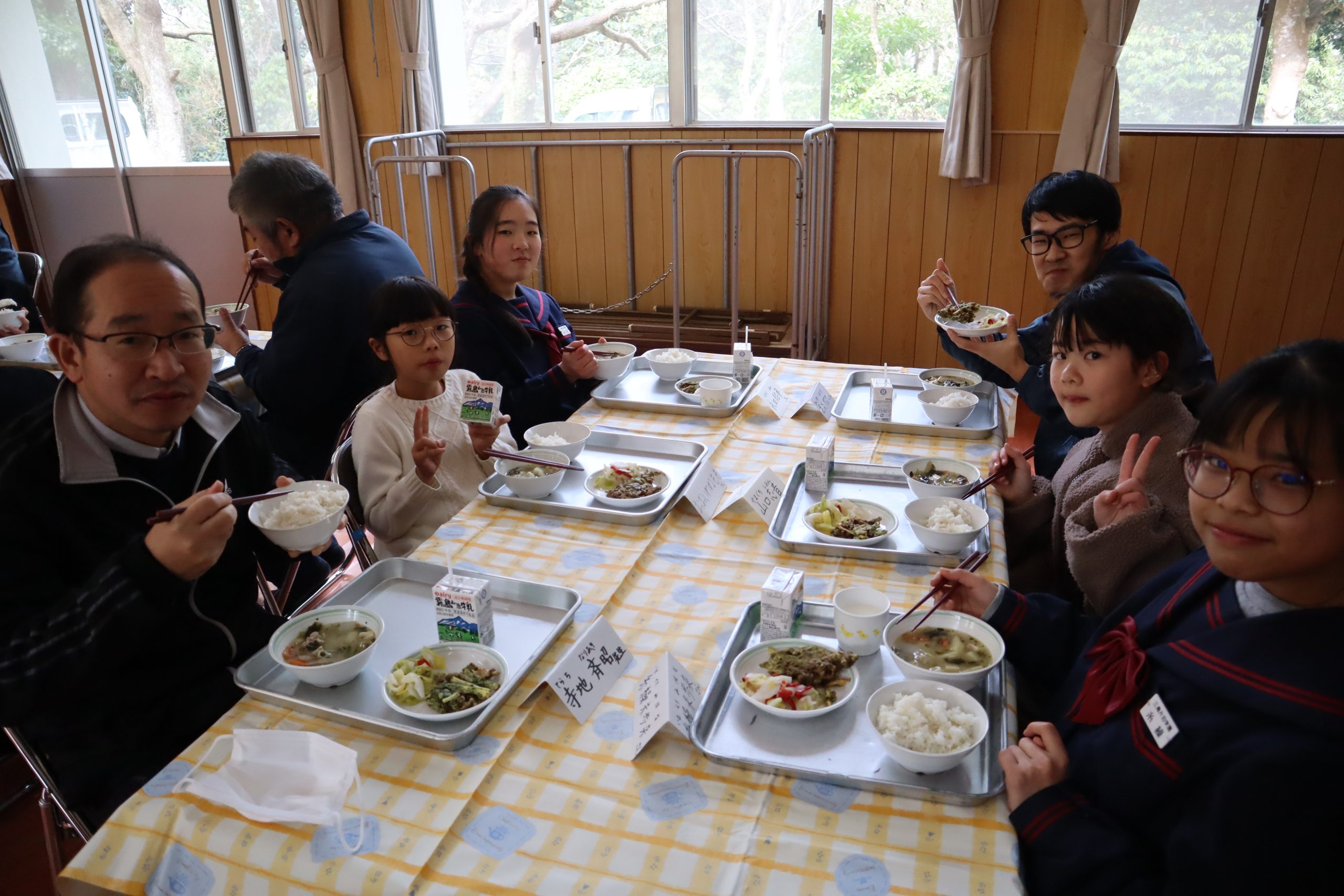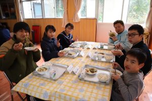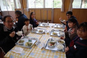 今年度最後の合同給食がありました。メニューは,「麦ごはん・★豚汁・★納豆と竹輪のかきあげ・かぶの甘酢和え」でした。(★は,卒業する9年生がリクエストしたメニューです。)みんなおいしそうにもりもり食べていました。最後ということもあり,いつも給食を作ってくださる調理員さんに感謝状を渡しました。みんながおいしく食べられるようにと,心をこめて作ってくださるのはもちろん,食器を直前まで温めてくれるなどの細かい心配りをしてくださっています。これからもおいしい給食楽しみにしています!!
