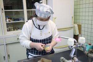 6年生は,「ジャーマンポテト」を作りました。調理が進むにつれておいしそうな匂いがあちこちからしてきて