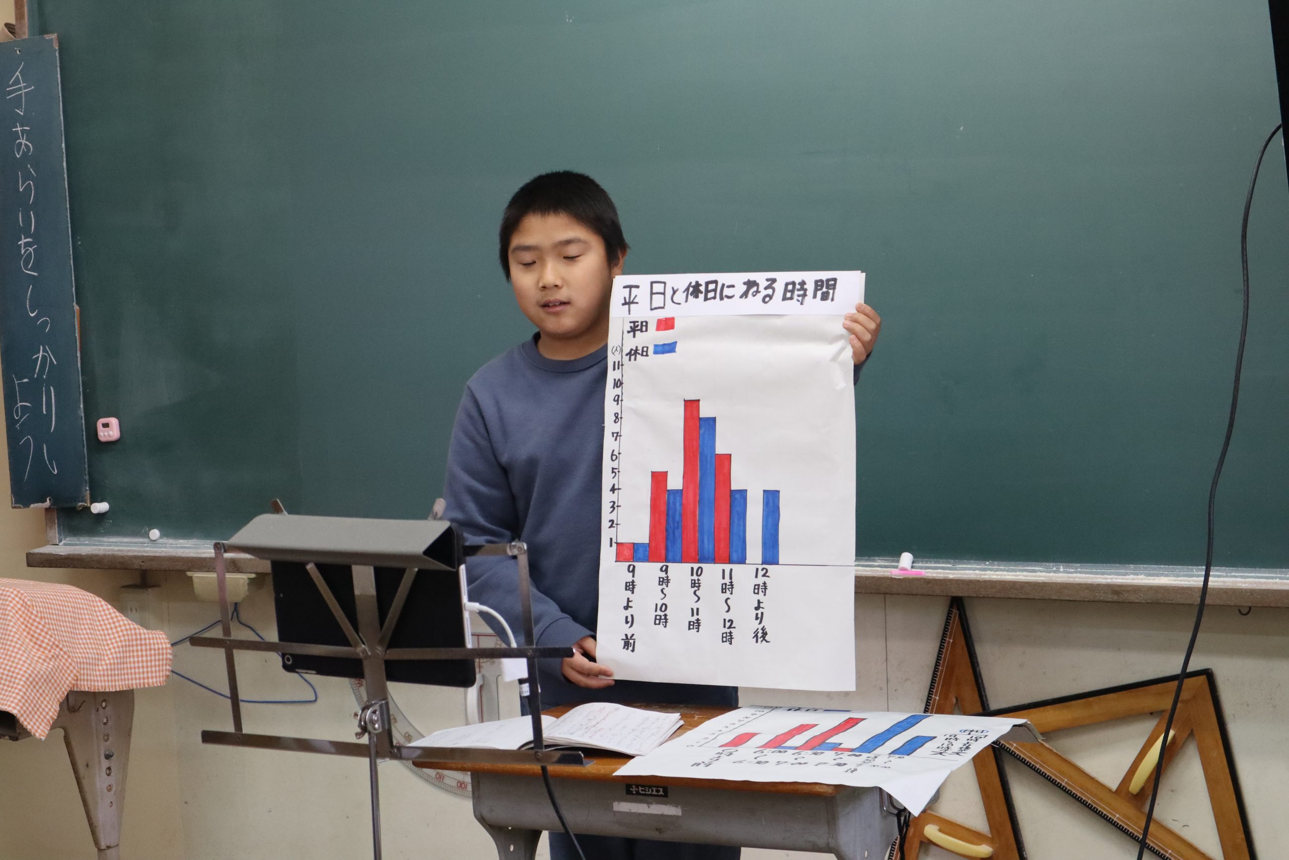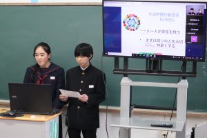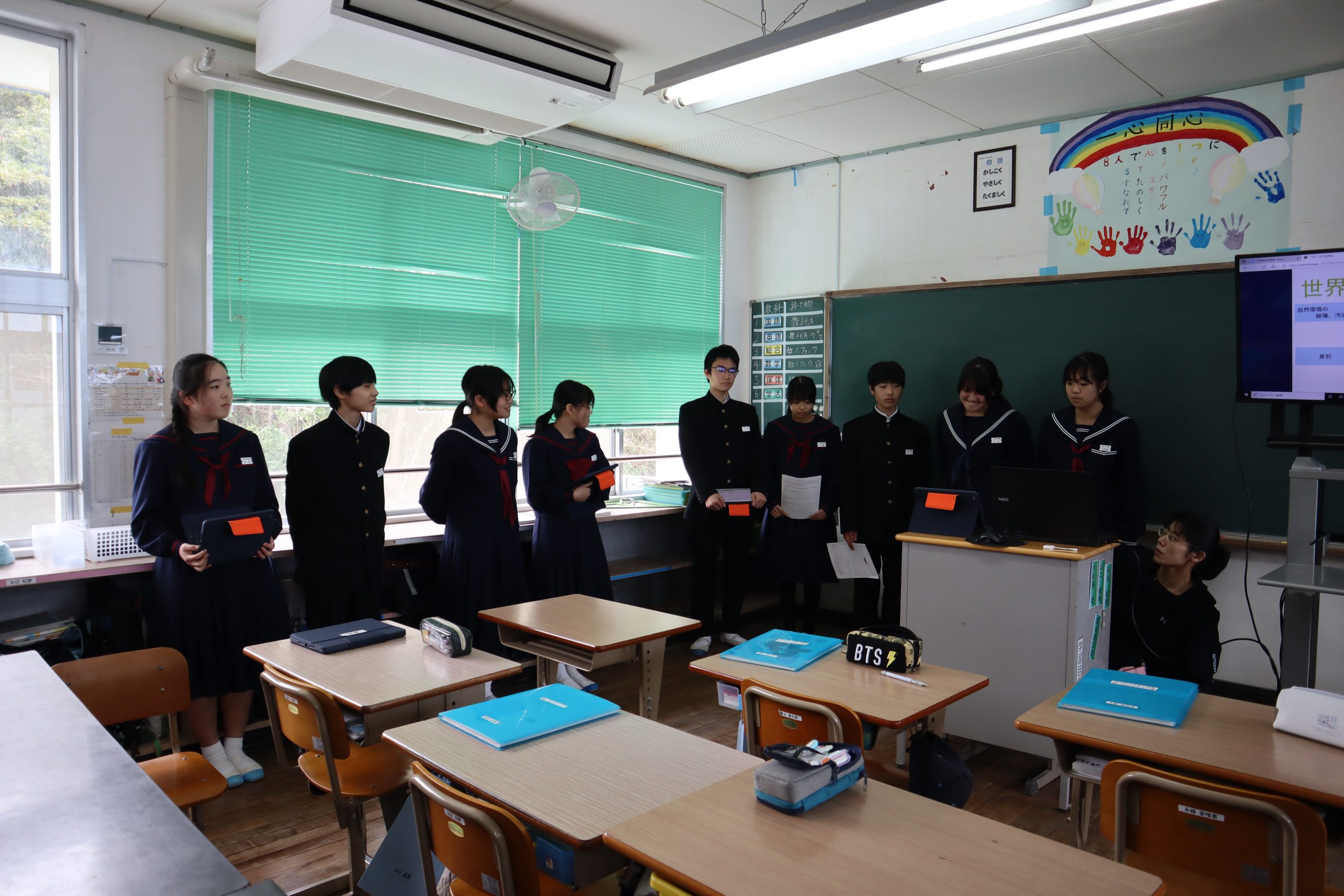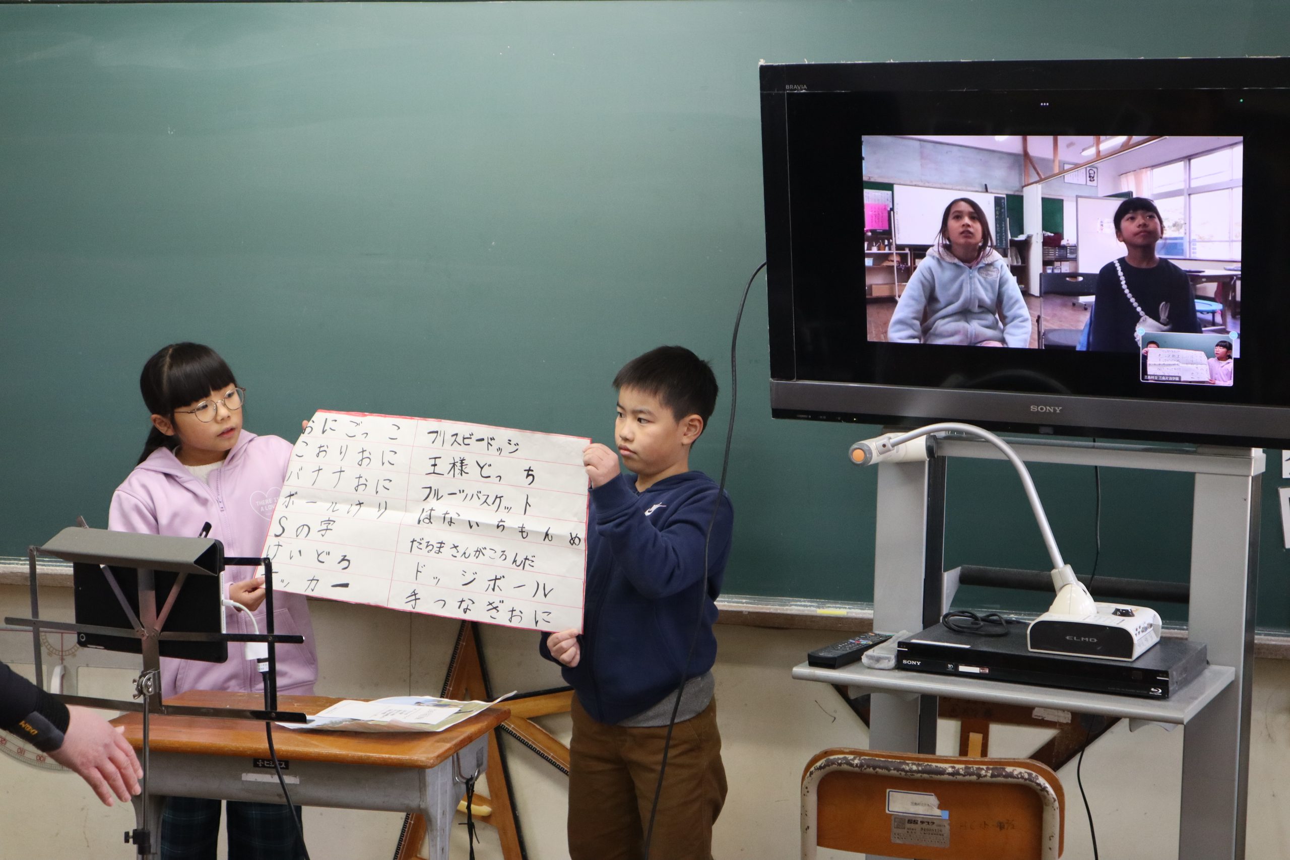 今日の三島片泊学園では,遠隔で三島村の他の学校とつないでの合同発表会が2つありました。 1つ目は,2時間目の3・4年生の国語科の授業です。3年生も4年生も,調べたことなどを図や表にまとめて上手に発表していました。そして,三島硫黄島学園の友達の発表も真剣に聞き感想も言っていました。 2つ目は,3校時に行われた後期課程生の三島村4校合同のジオ科の発表です。SDG’sについて,みんなで発表しました。さすが後期課程生,スライドを動かしながら落ち着いた発表でした。