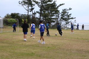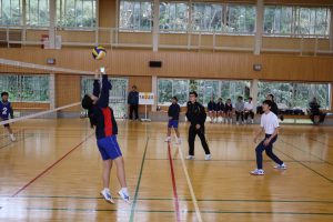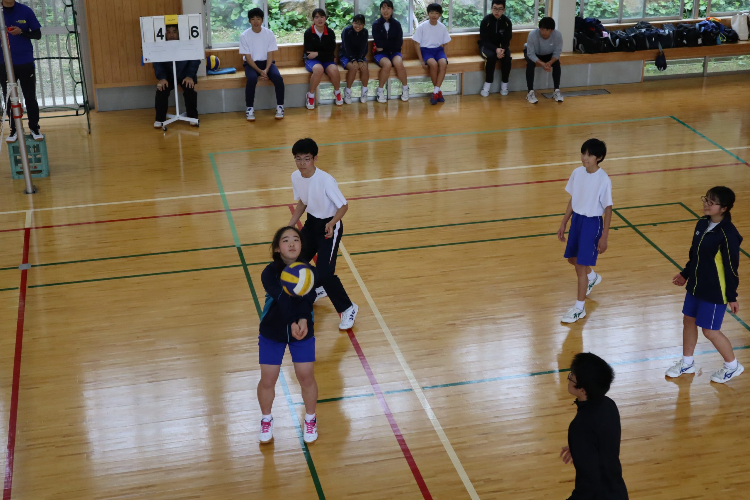 2〜4校時に,後期課程生にとって毎年恒例の「三島大里学園との合同体育」がありました。会場は大里でした。室外ではサッカー,室内ではバレーボールをしました。どちらの競技も記憶に残る熱戦となりました。スポーツを通して三島大里学園との交流を深めることができました。