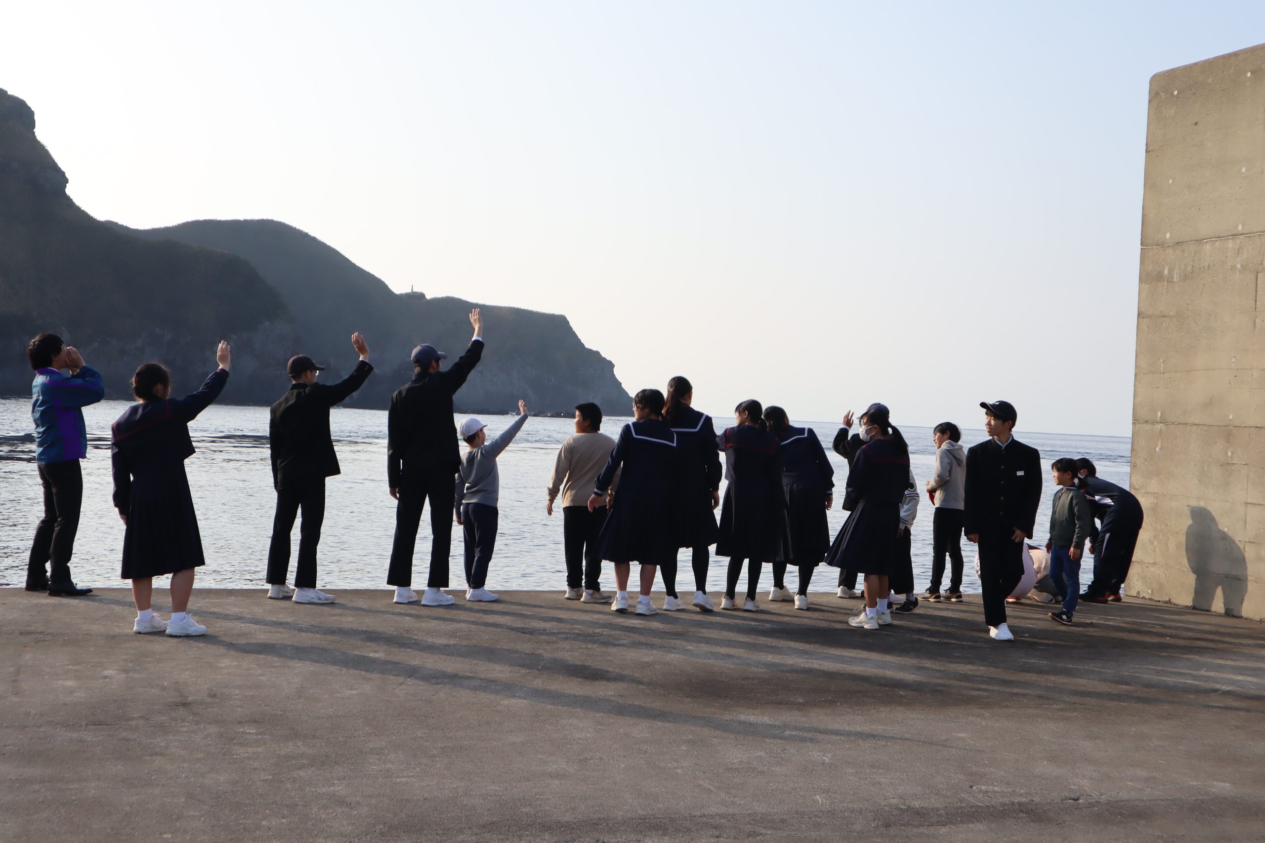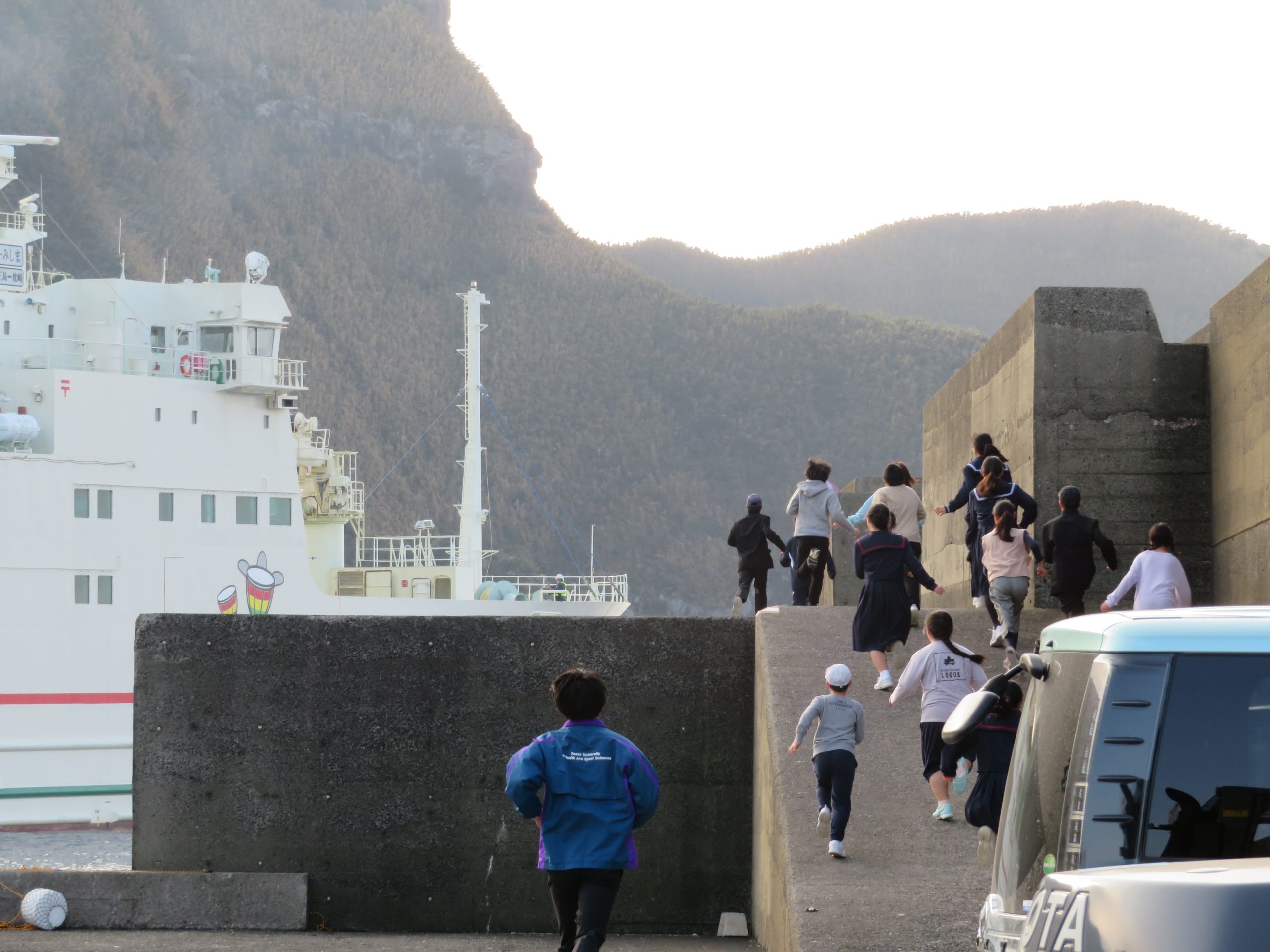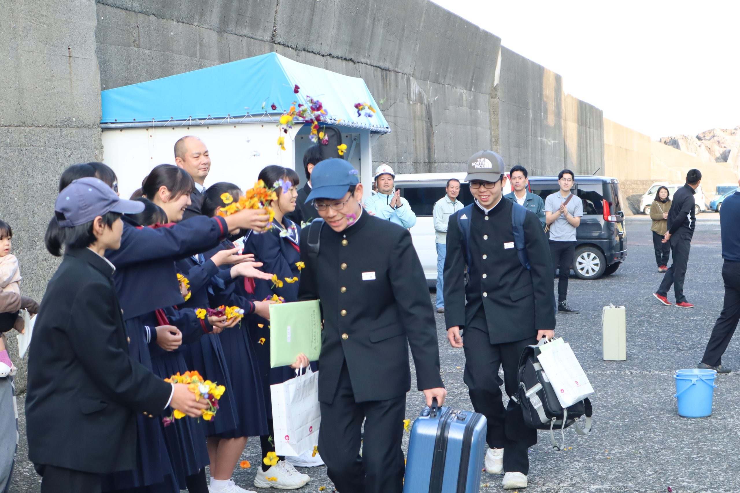 卒業式から一夜明けての今日、9年生のうち「しおかぜ留学生」2名が島立ちしました。朝8時出航の「みしま」で旅立つ2人をたくさんの地区の方々も見送ってくださいました。これから離ればなれになってしまいますが、片泊からずっと応援しています!!