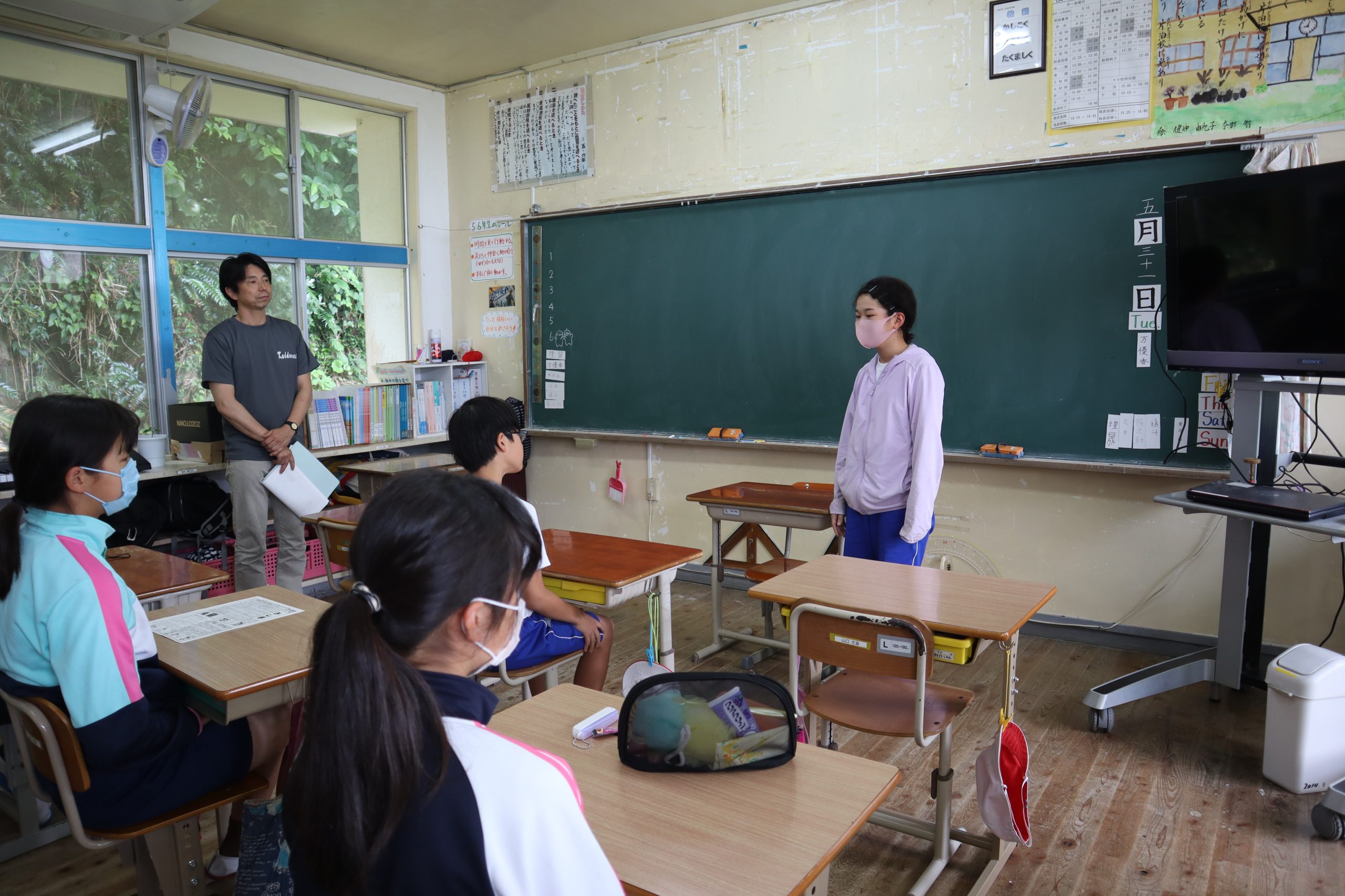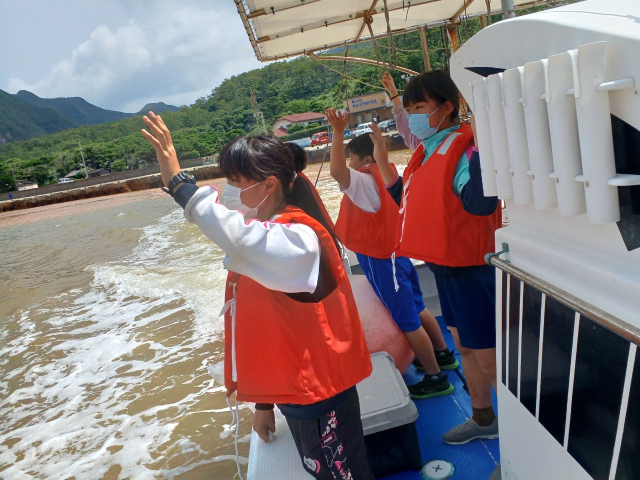 今日,5・6年生が2泊3日の硫黄島で行われた宿泊学習から帰って来ました。