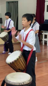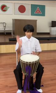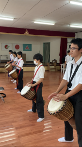 昼休みジャンベ練習がありました。自分たちの演奏の録音を聞き,何を意識して演奏をすればよいのか,意見を出し合い,練習をしていました。夏の祭典まであと2週間です。練習の成果を出し切れるよう,残り2週間頑張ります。
